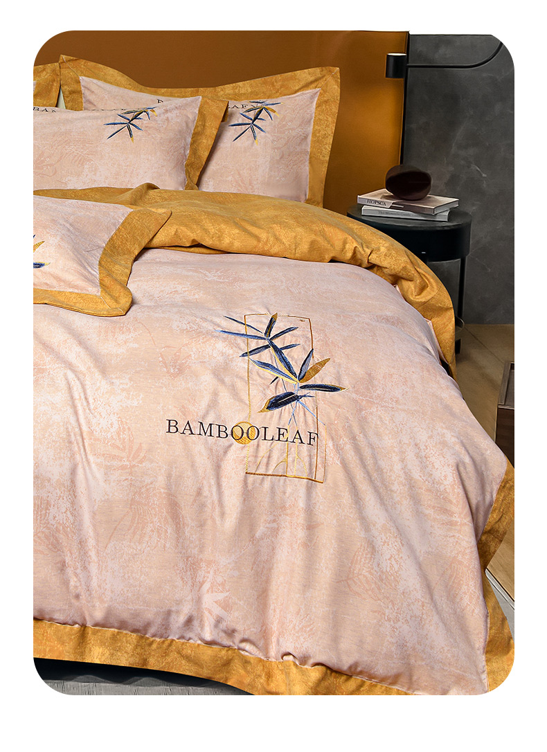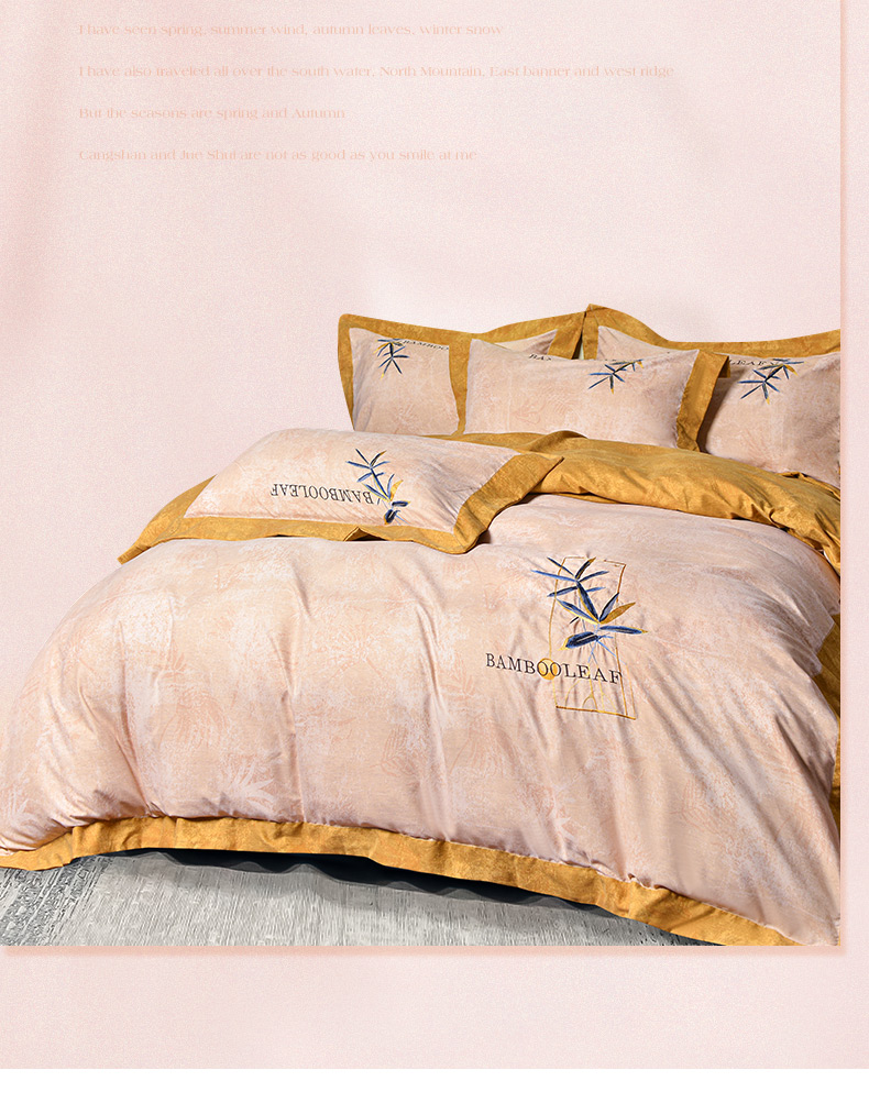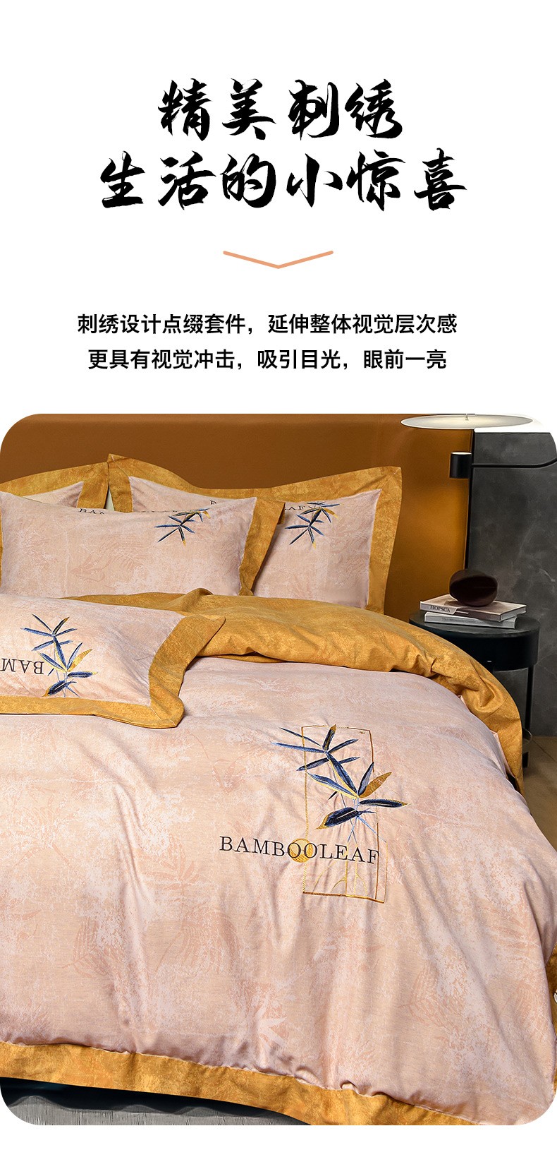 (总)梦柏家纺 2022新款亲肤雅棉绣花四件套,茶色,魔力灰,南瓜色,珊瑚绿,深海兰,杏色