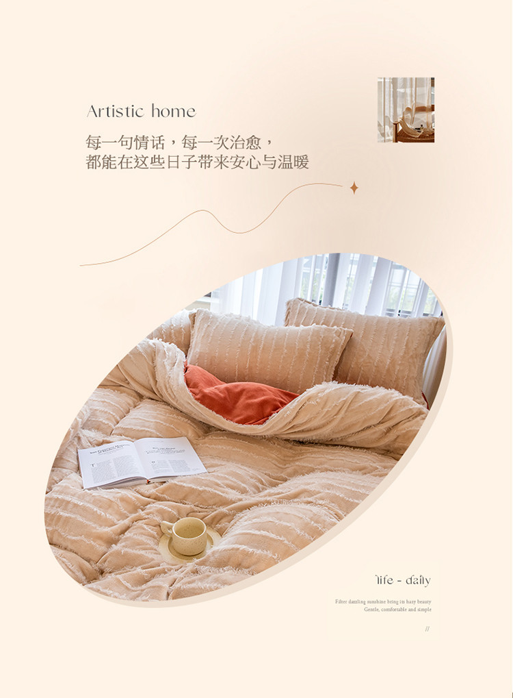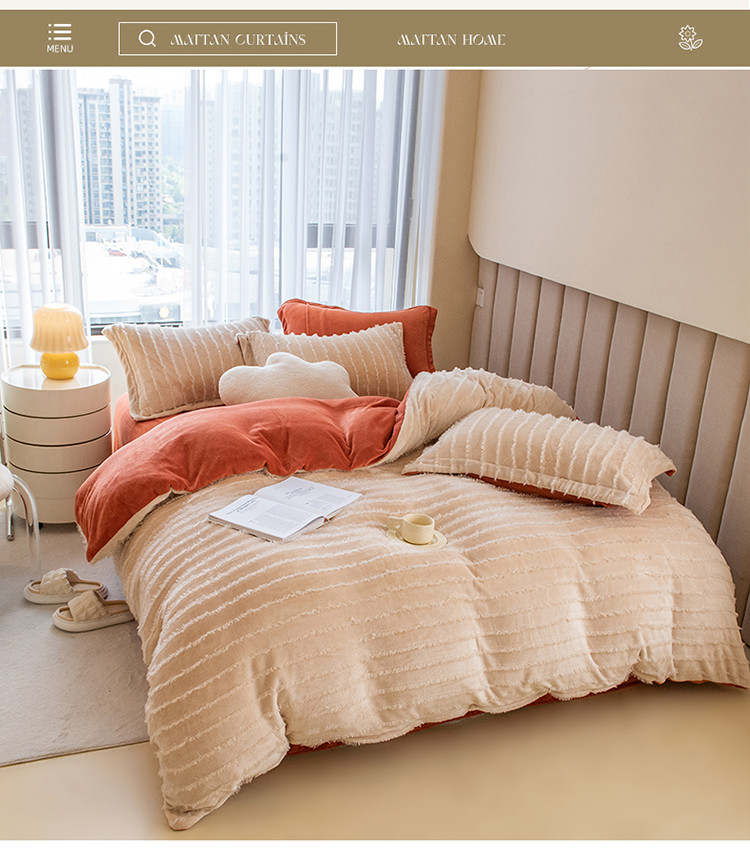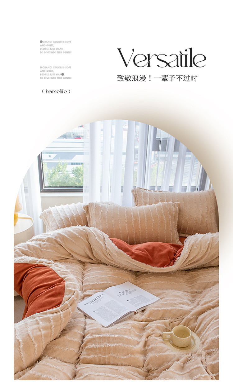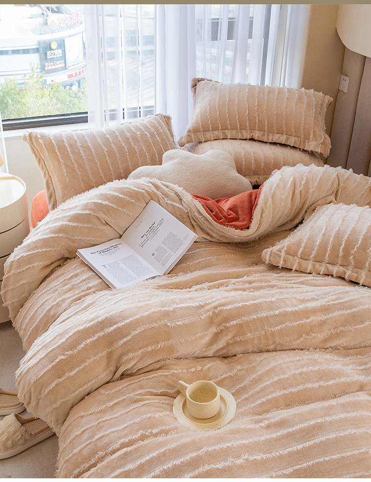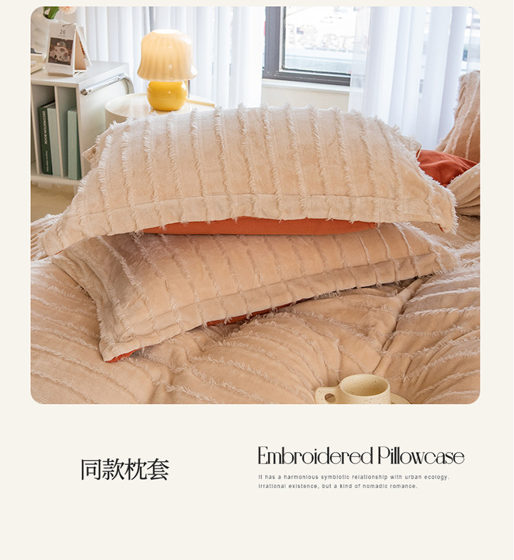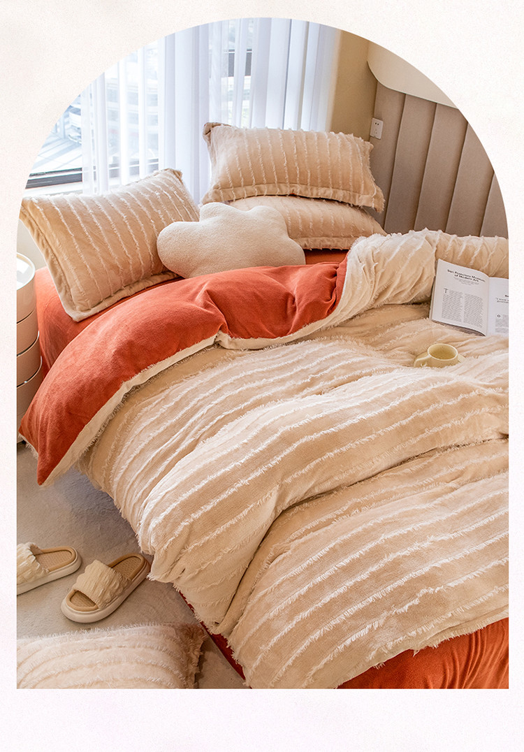 商品名称:骏腾 2022直播爆款纯色流苏牛奶绒四件套法莱宝宝绒 朵拉-奶咖橙