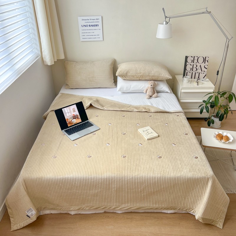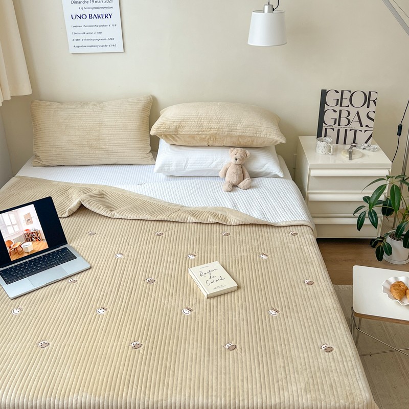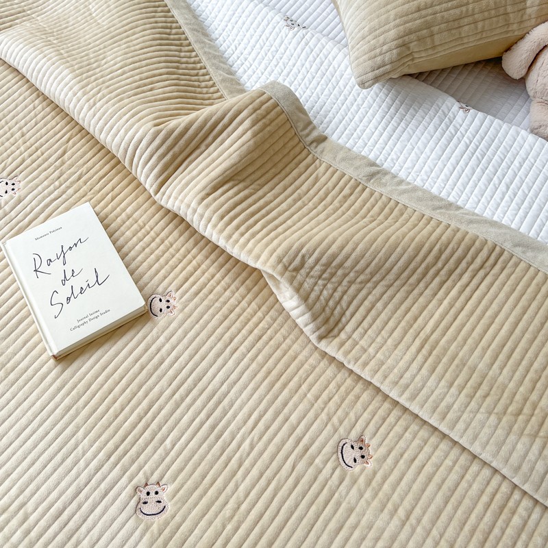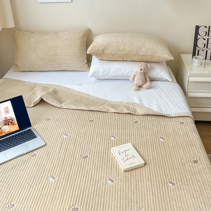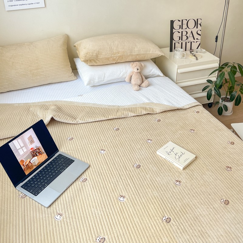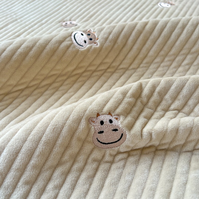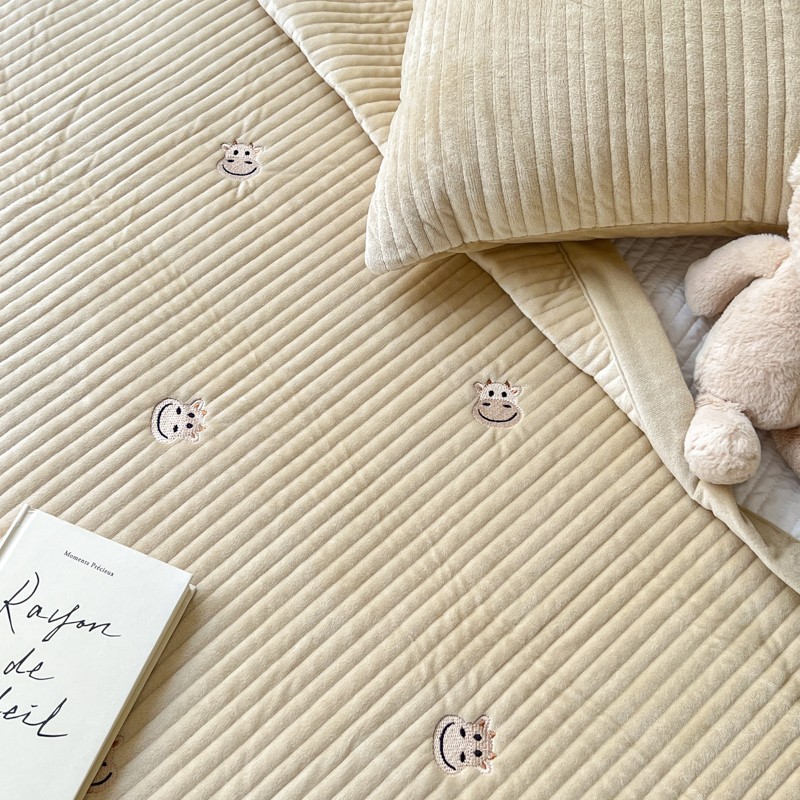 漫调 2022新款宝宝绒刺绣床盖三件套四件套 牛牛卡其