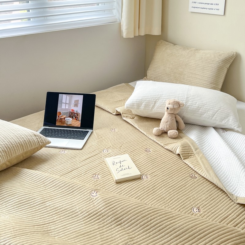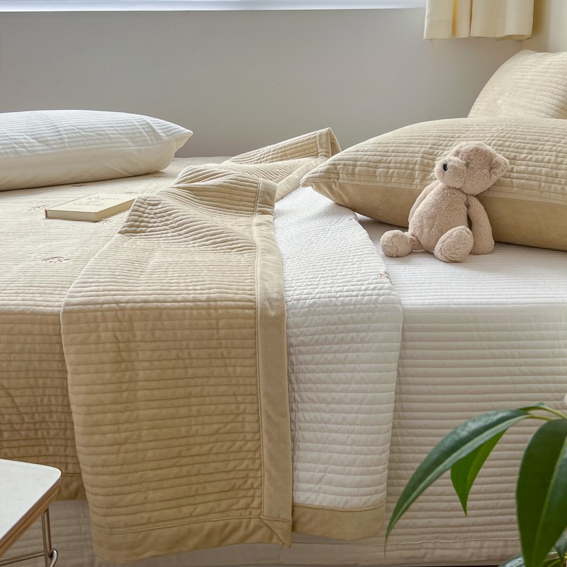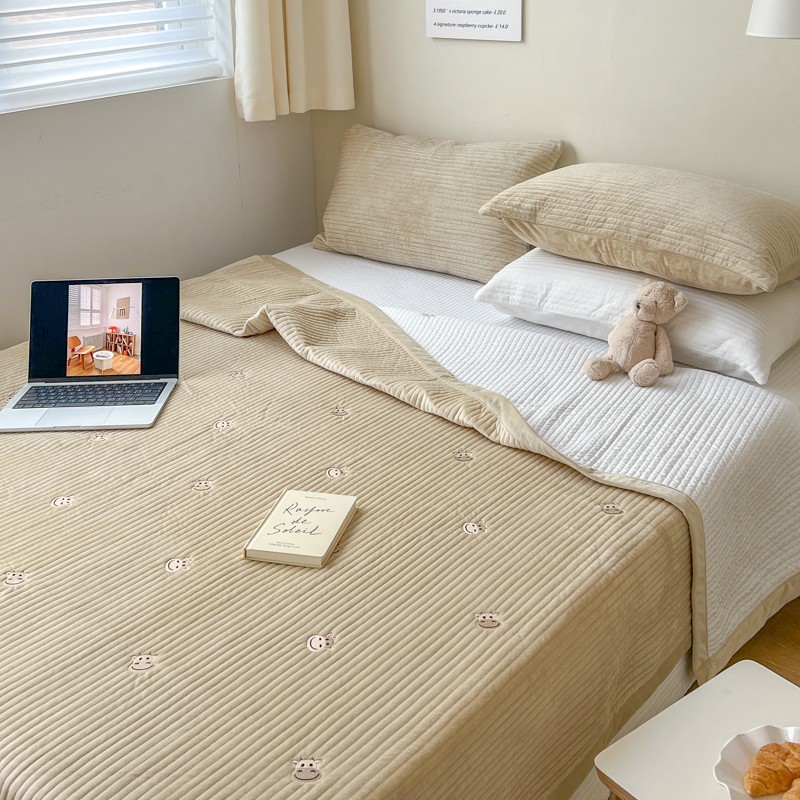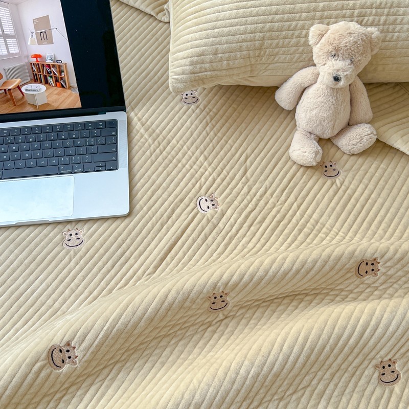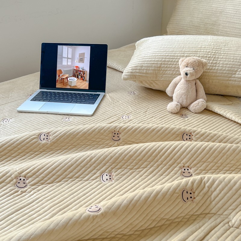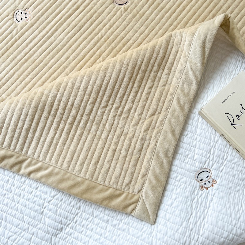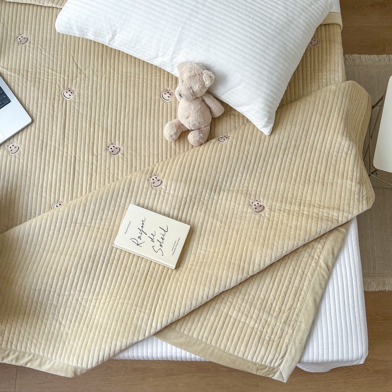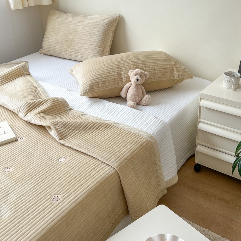 漫调 2022新款宝宝绒刺绣床盖三件套四件套 牛牛卡其