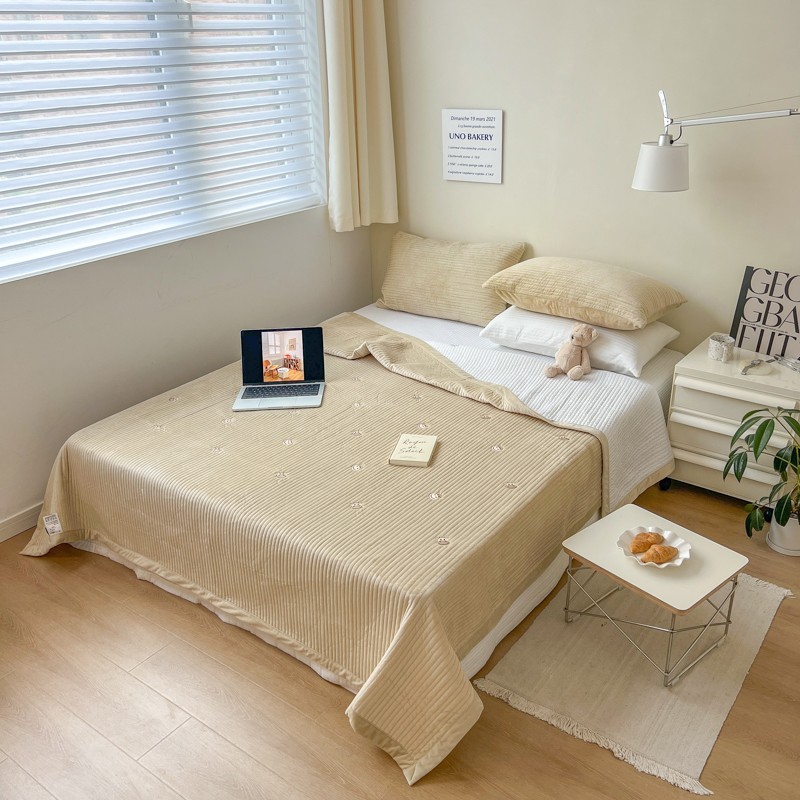 (总)漫调家纺 2025新款全棉双层纱与绒床盖三件套,黛紫缀花,粉雾枝蔓,玫瑰故事,青芜点绯,轻烟凝灰