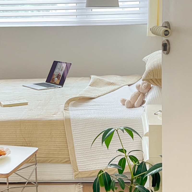 (总)漫调家纺 2025新款双面60S贡缎床盖夏被,春荷绿,淡奶昔,摩卡棕,柔雾粉,银月灰,珍珠白