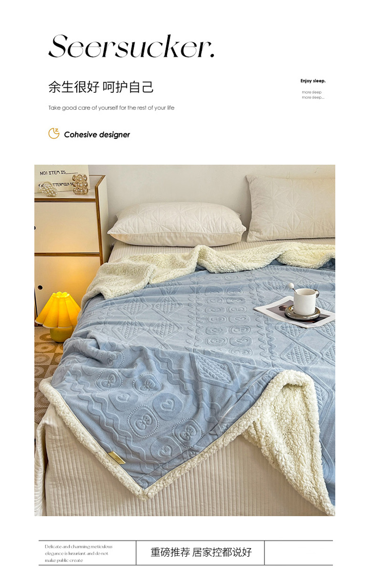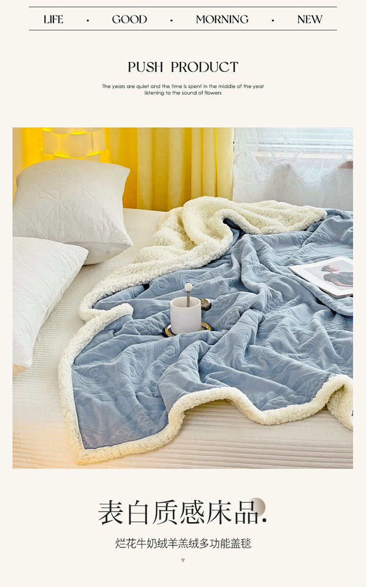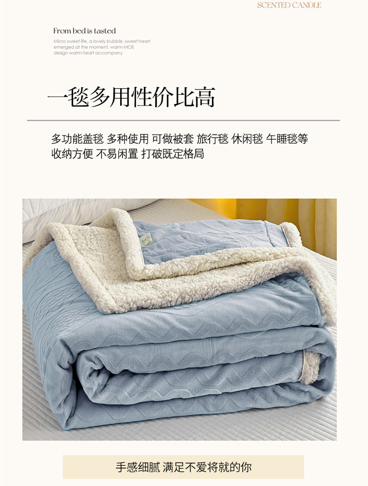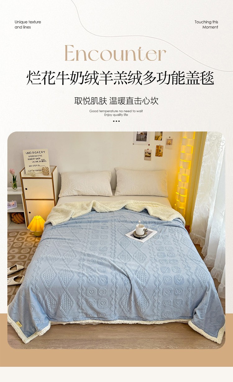 寐居 2022新款烂花牛奶绒羊羔绒多功能毛毯 简爱-蓝