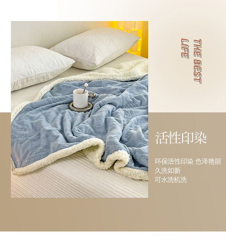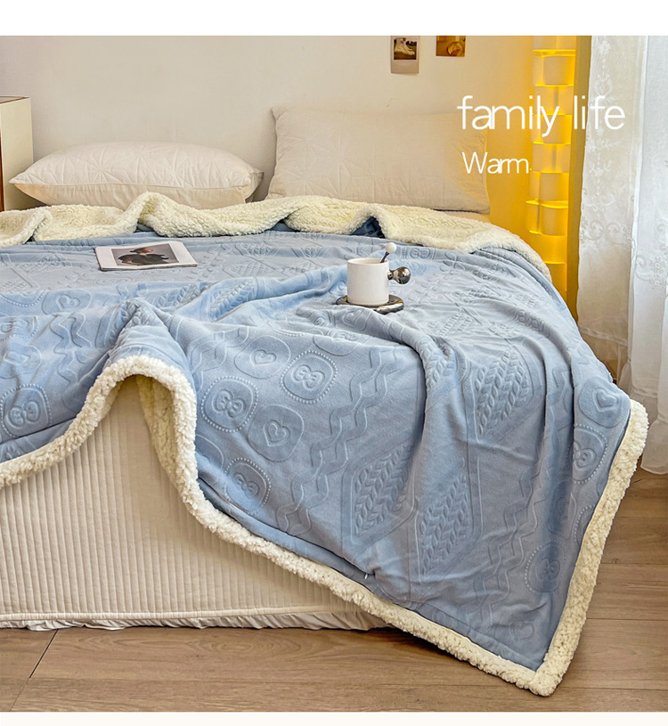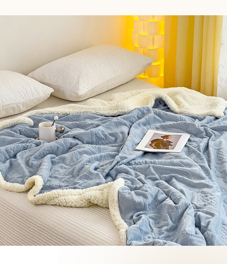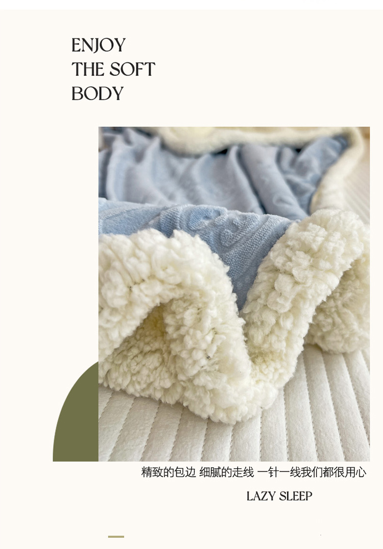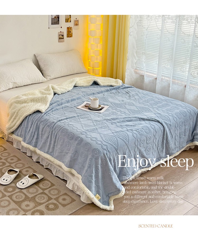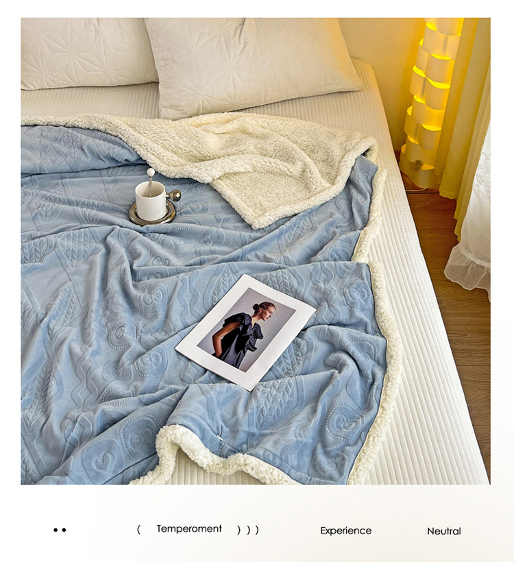 寐居 2022新款烂花牛奶绒羊羔绒多功能毛毯 简爱-蓝