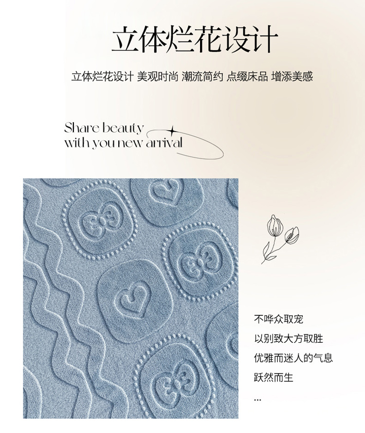 (总)寐居家纺 2025新款3D烂花牛奶绒四件套,花想容-米白,花想容-紫灰,浪漫花语,浅梦絮语,枝影蝶梦