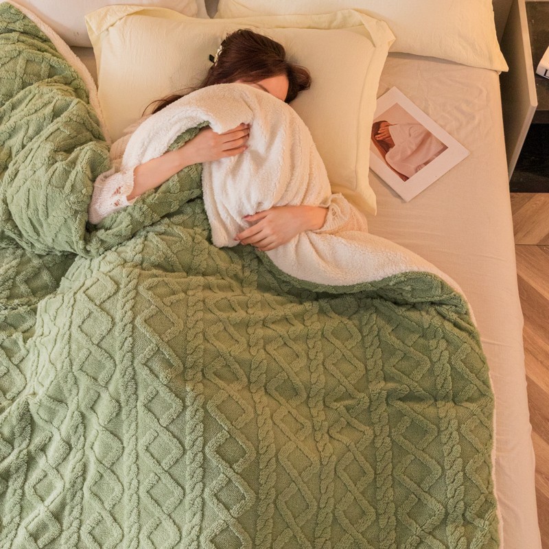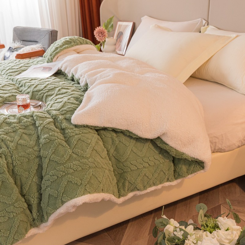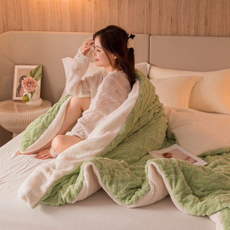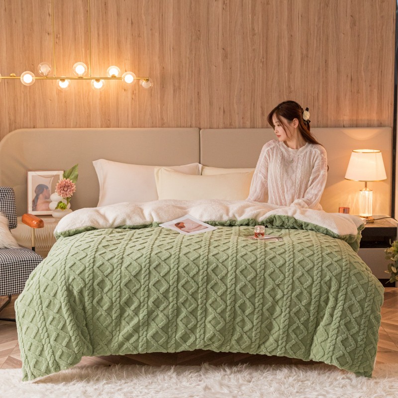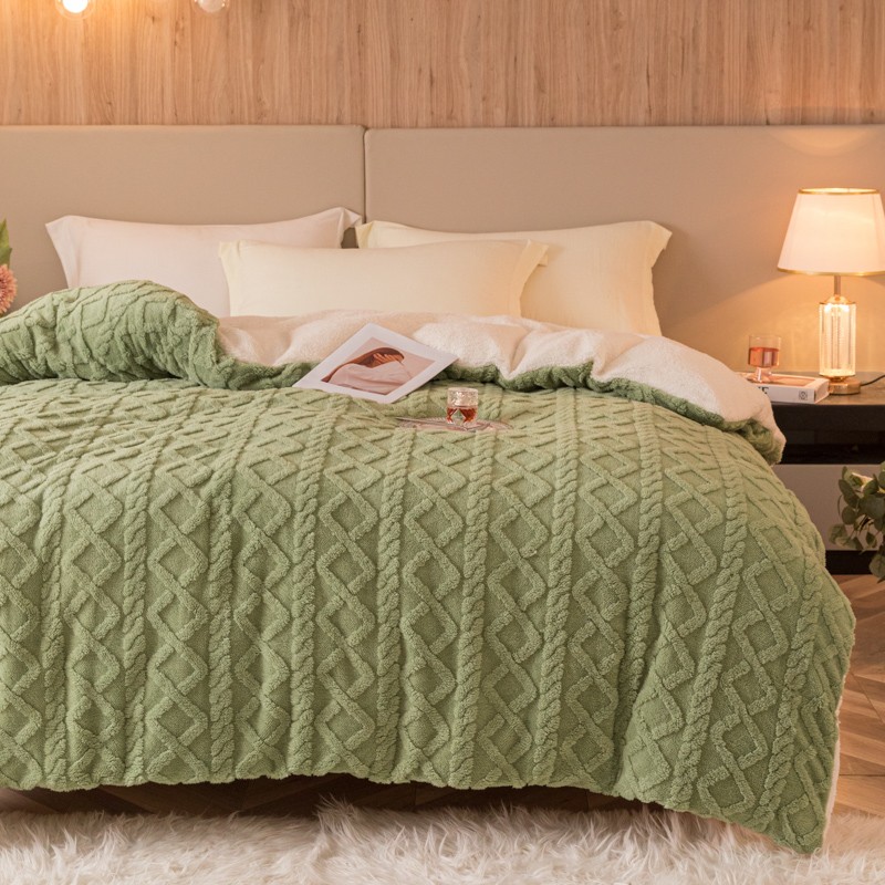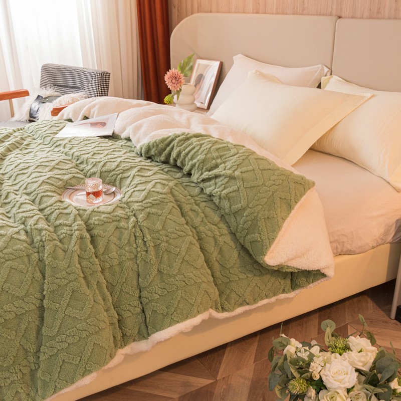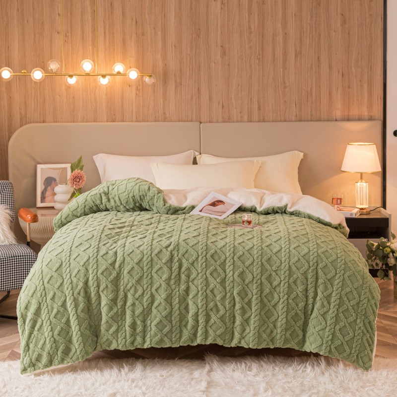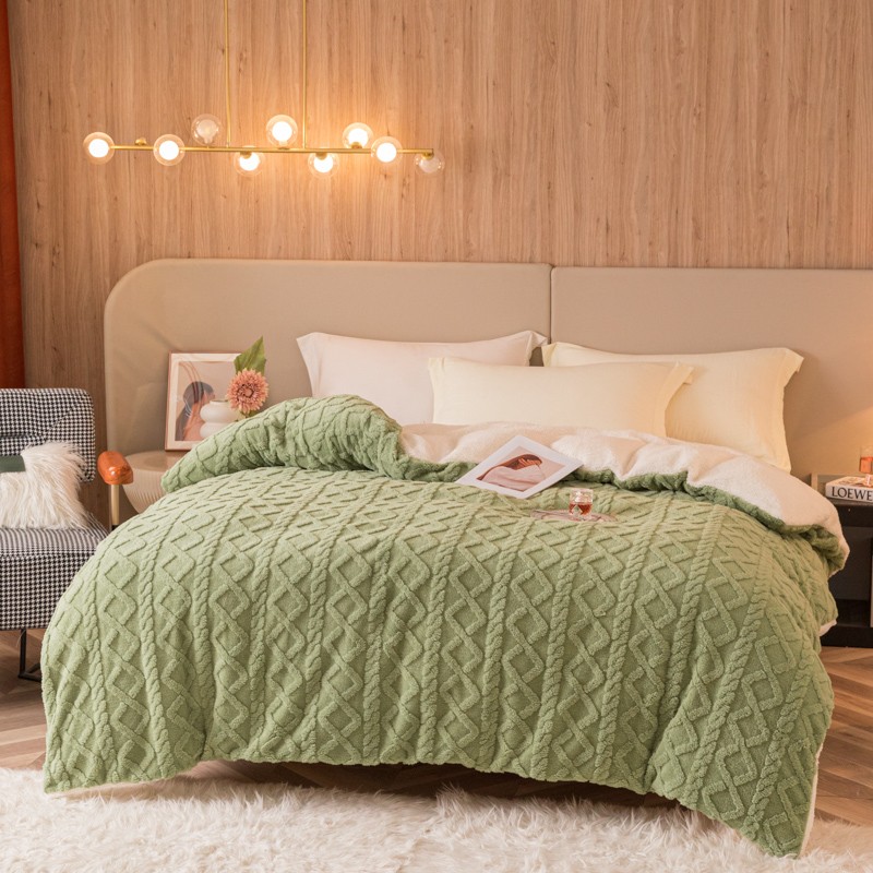 简爱-2025舒棉绒羊羔绒单被套多功能毯 菱形茉格-抹茶绿