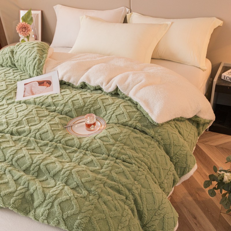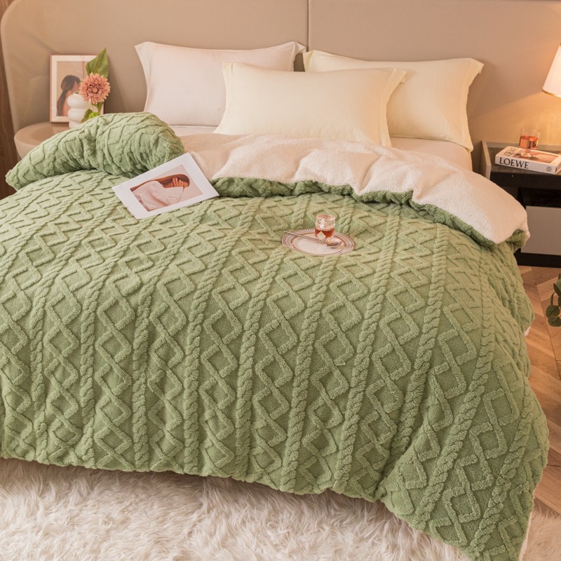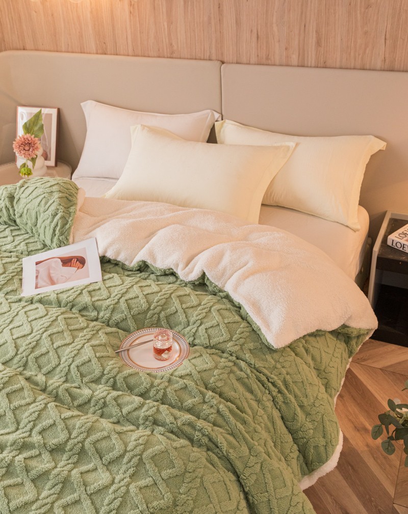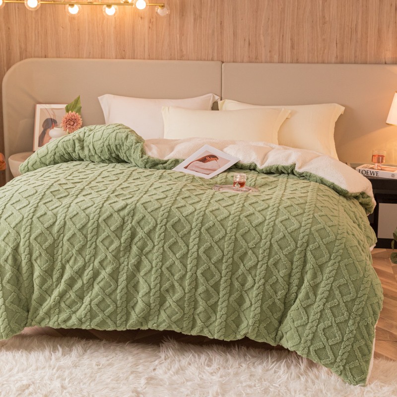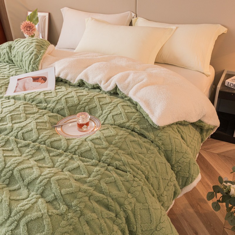 商品名称:简爱-2025舒棉绒羊羔绒单被套多功能毯 菱形茉格-抹茶绿
