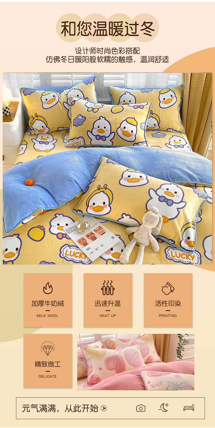金鑫汇 2022新款牛奶绒四件套系列-单床笠 欢乐鸭-黄