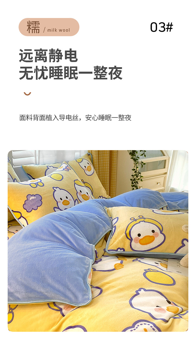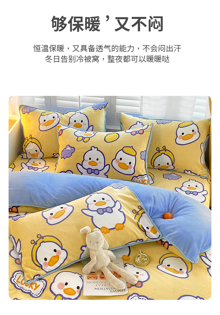 商品名称:金鑫汇 2022新款牛奶绒四件套系列-单床笠 欢乐鸭-黄