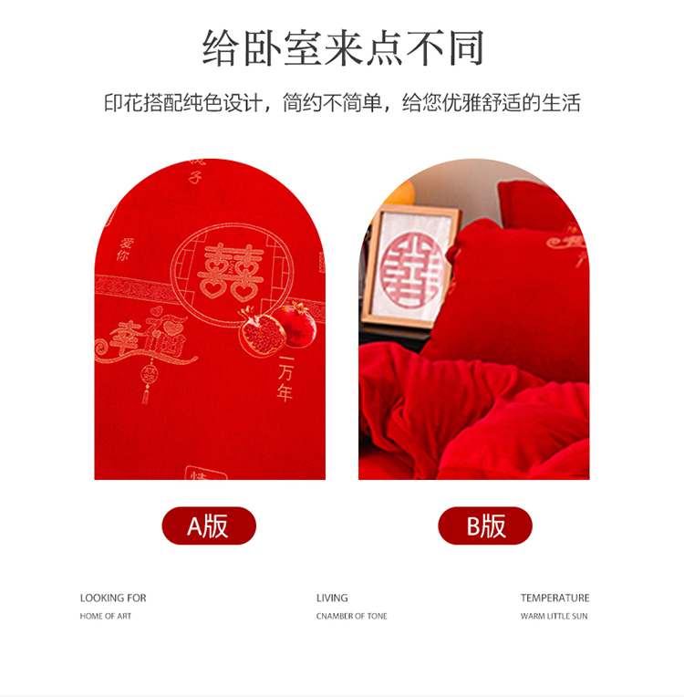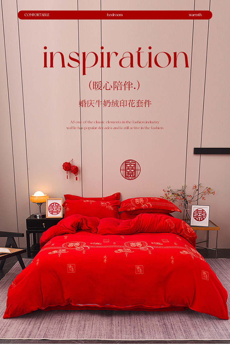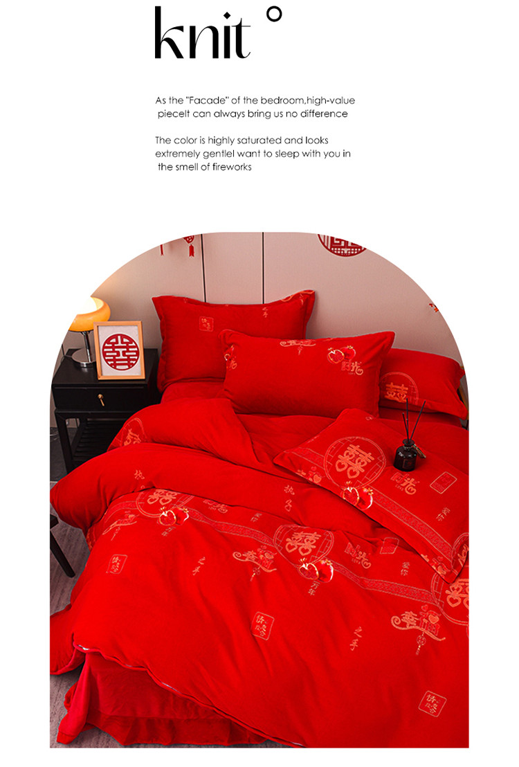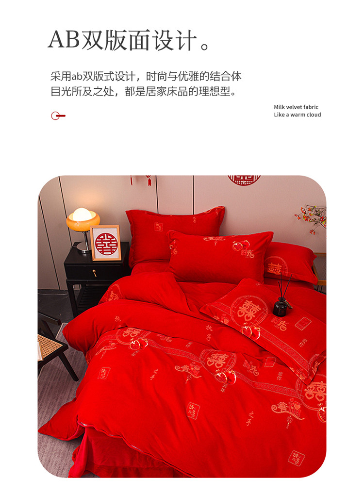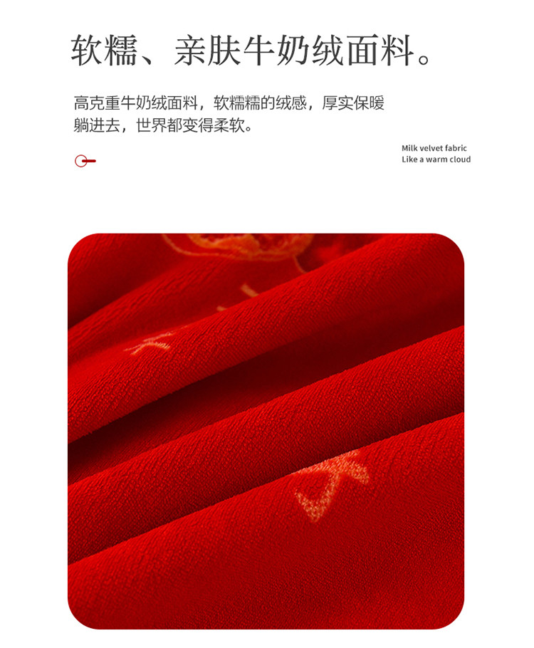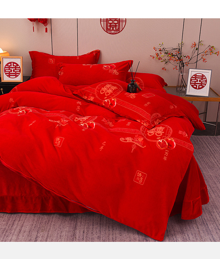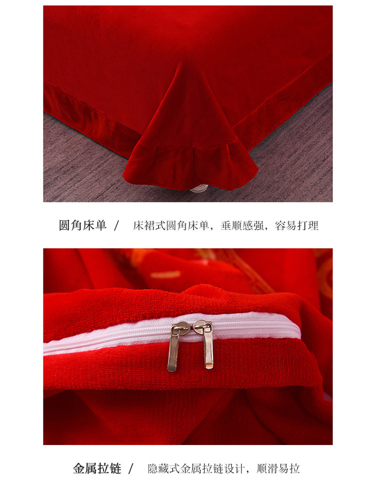 金麦家纺 新款婚庆牛奶绒印花婚庆被大红喜被四件套 执子之手