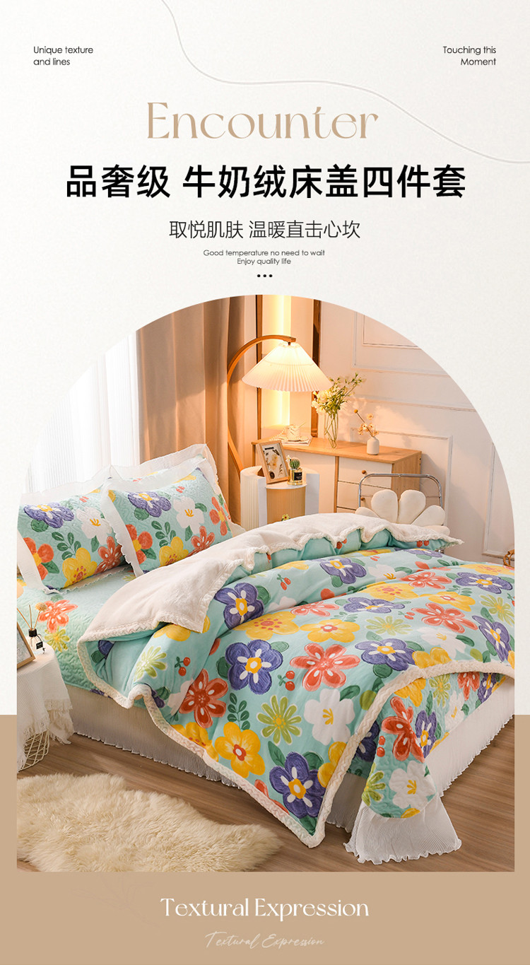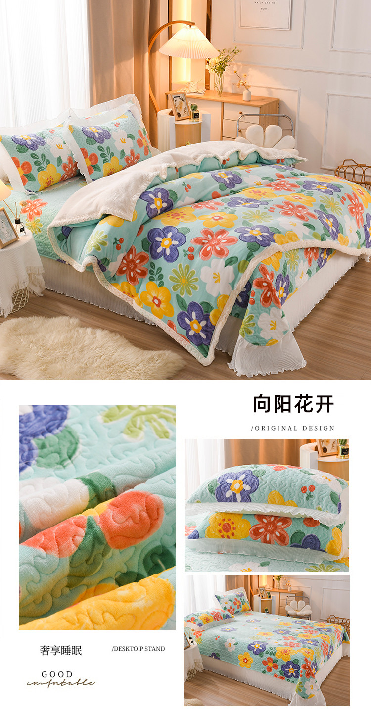 商品名称:迷仙巢 2022新款牛奶绒床盖款四件套 向阳花开
