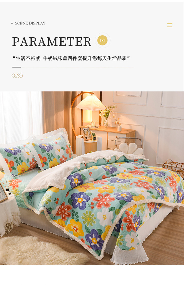 (总)迷仙巢 2022新款牛奶绒拼北极绒贝贝绒包边四件套,爱的憧憬,格子熊,绿白格,马到成功,田园生活,向阳花开,小恐龙,小奶牛,心动,心心相印