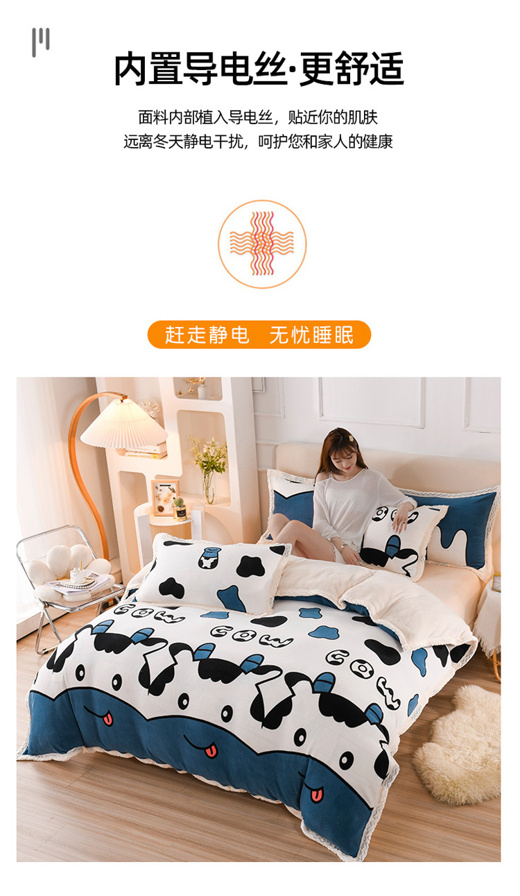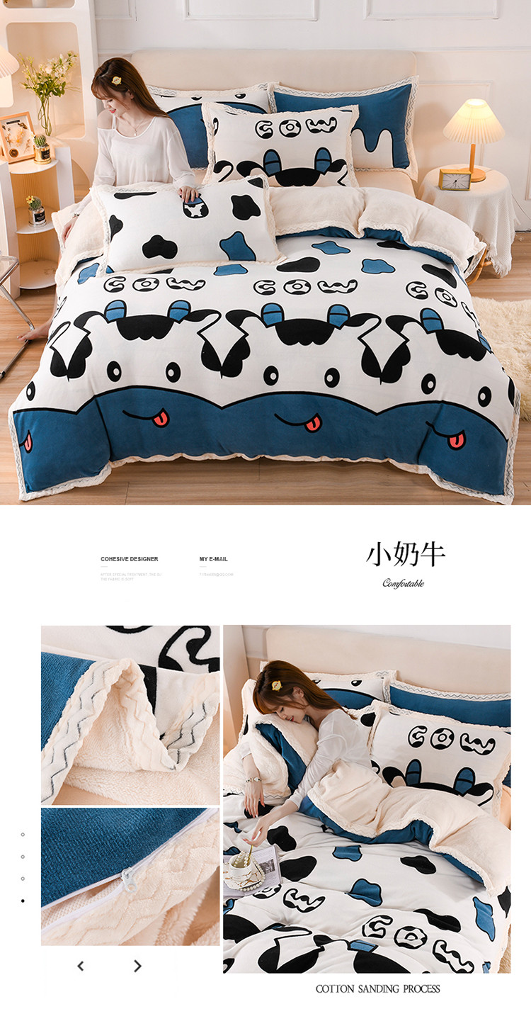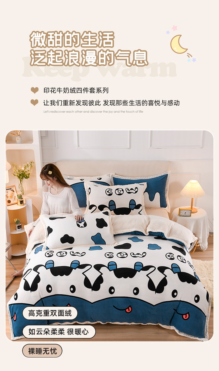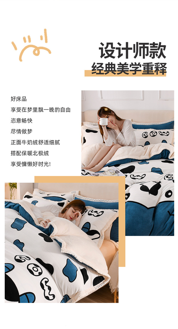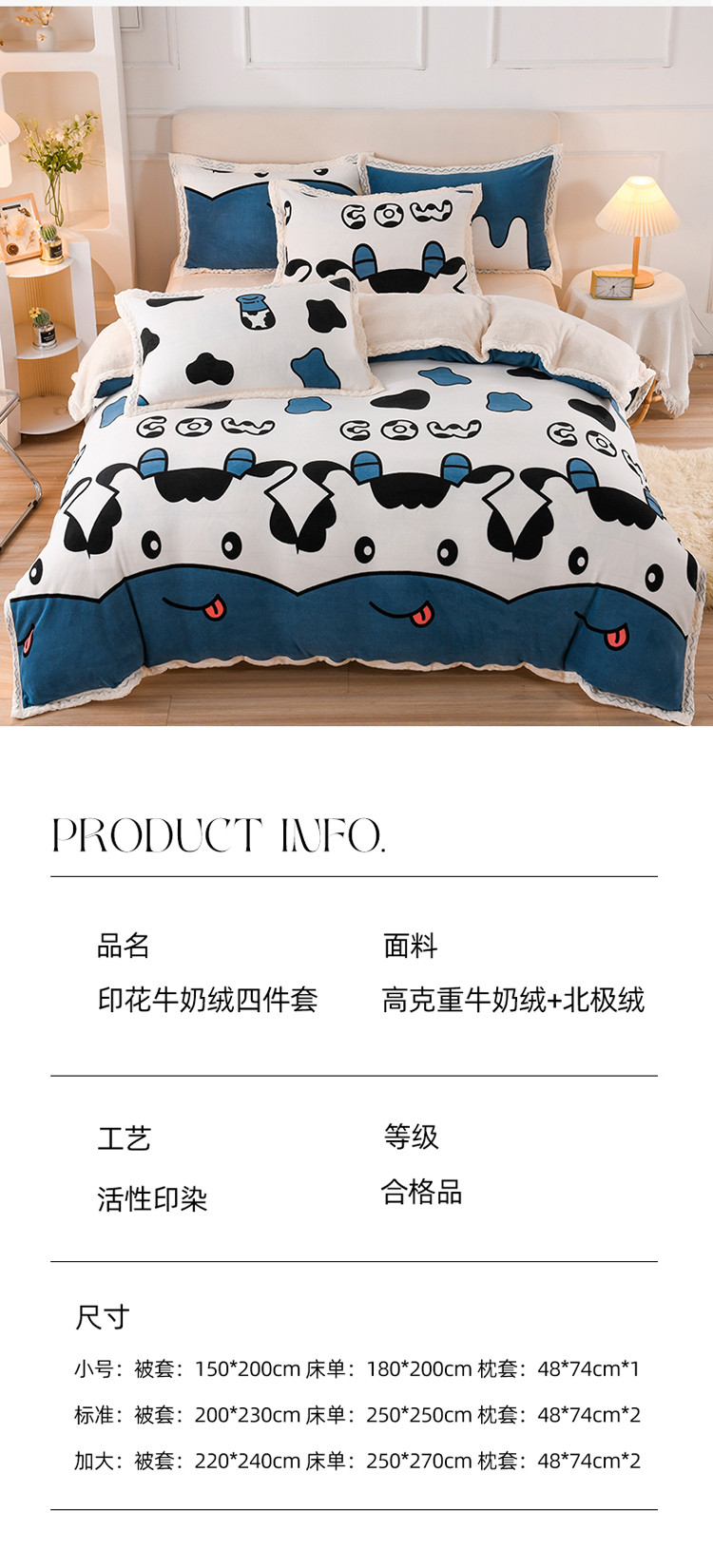 当前位置: 91家纺网 > 商品网购 > 床品套件 > 四件套 > 牛奶绒四件套 > 迷仙巢 2022新款牛奶绒拼北极绒贝贝绒包边四件套 小奶牛