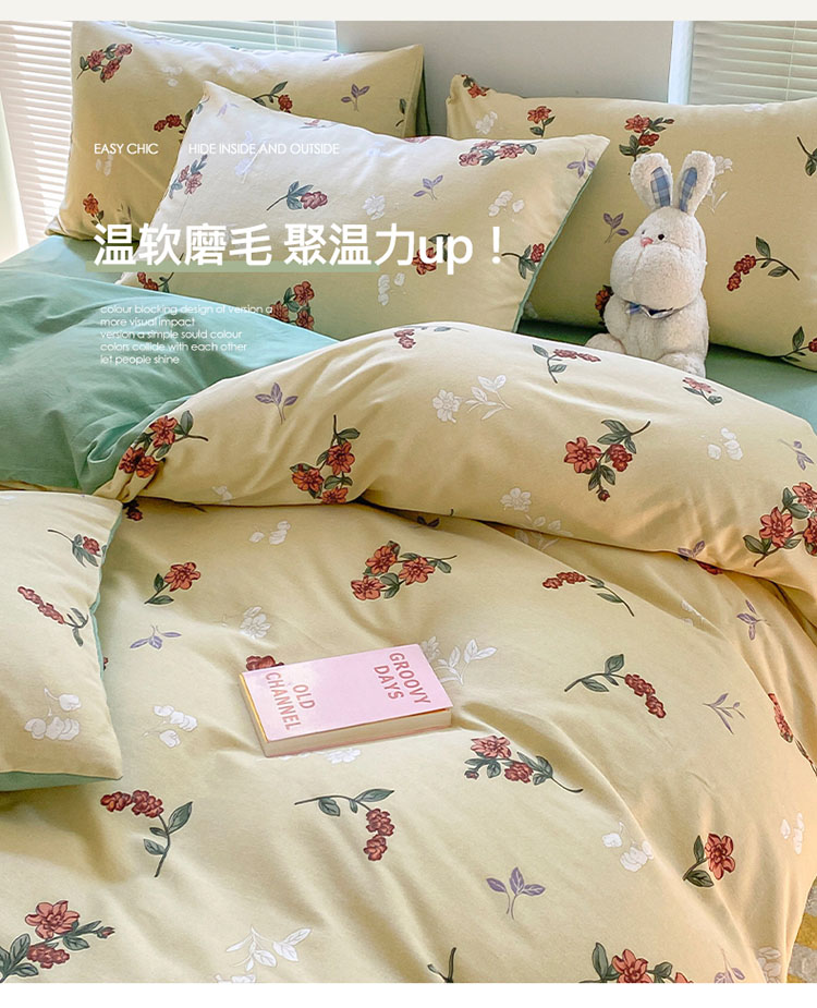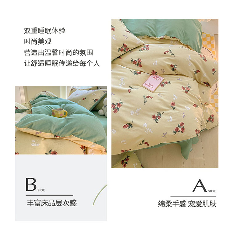 商品名称:雅居纺 2022新款生态磨毛四件套 复古花