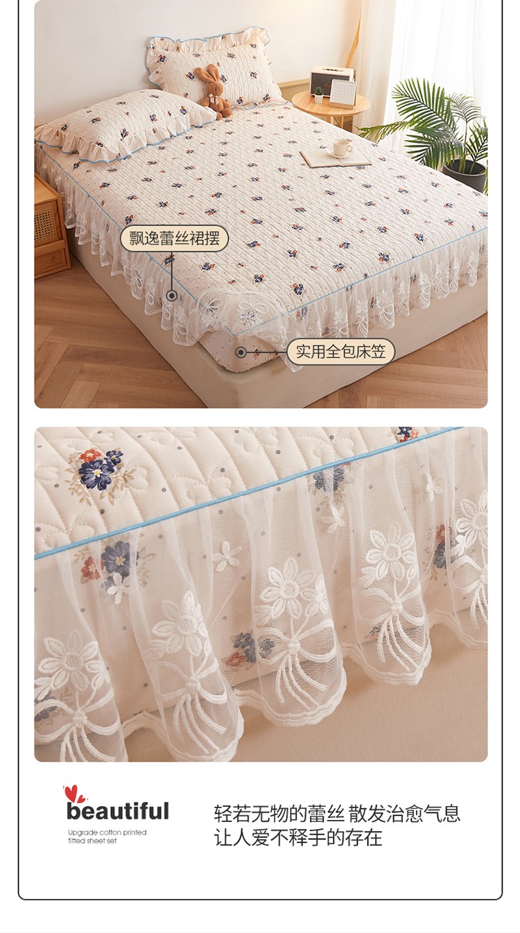 宜凡 2023新款四季款夹棉小清新床笠三件套 怡然