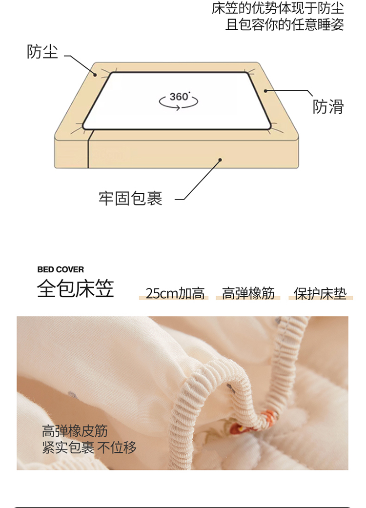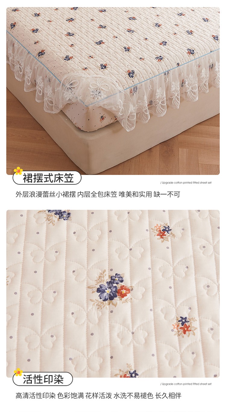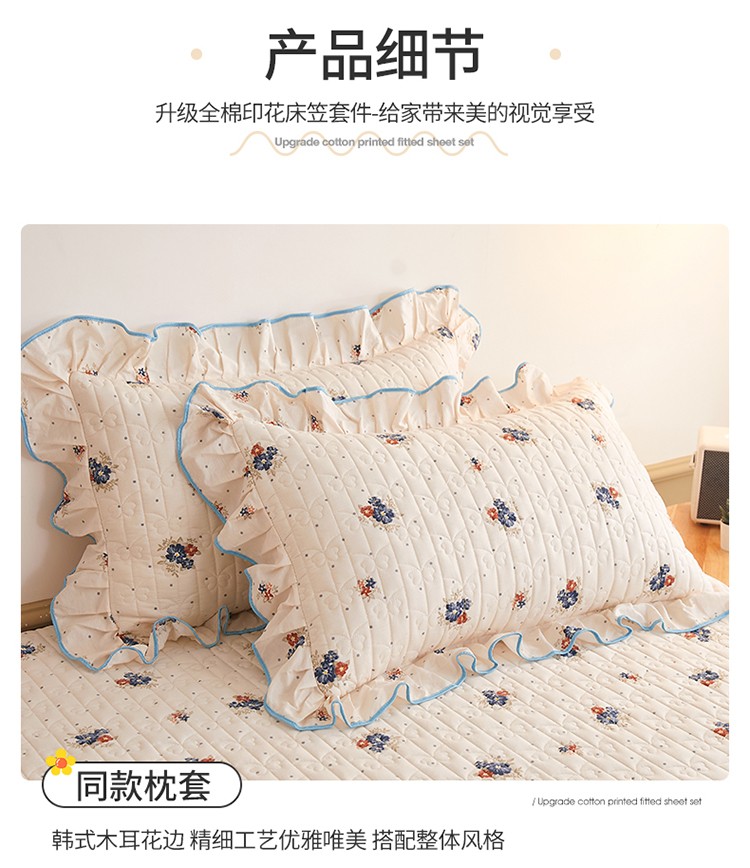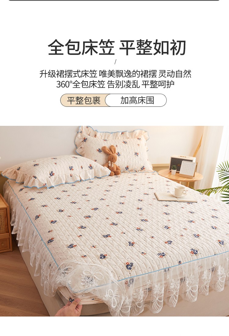 商品名称:宜凡 2023新款四季款夹棉小清新床笠三件套 怡然
