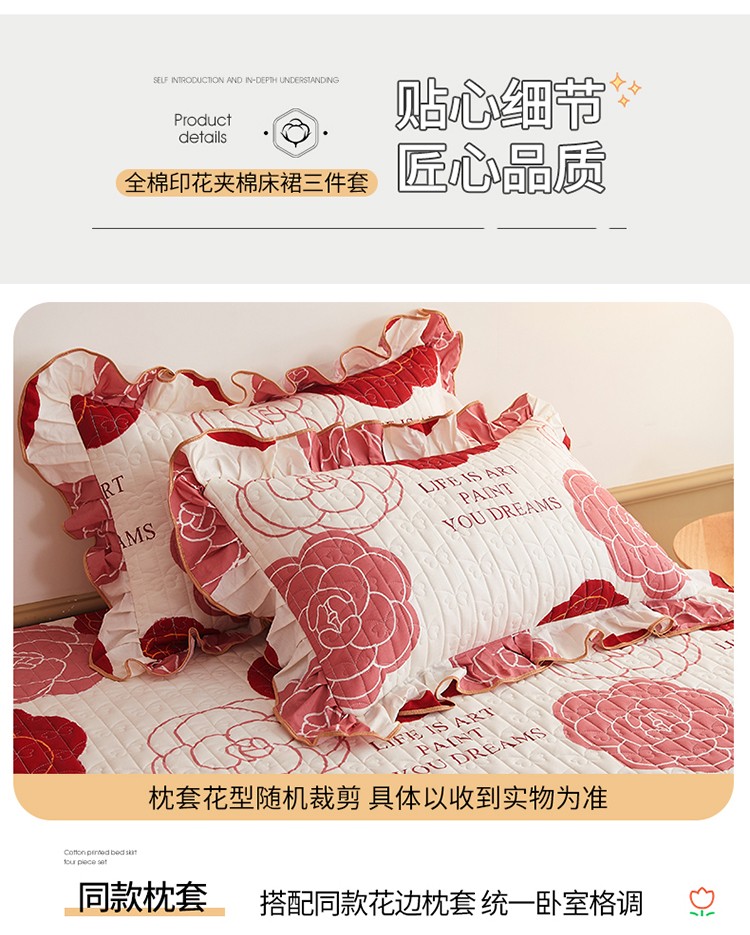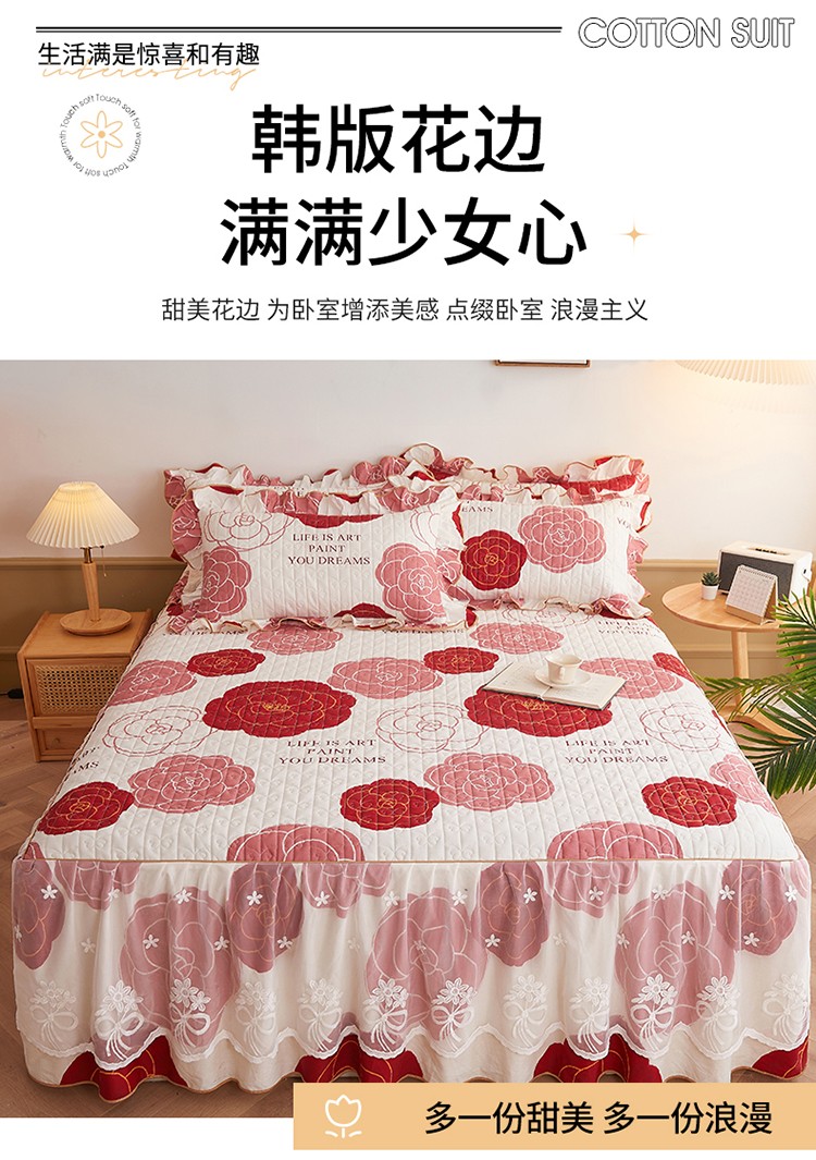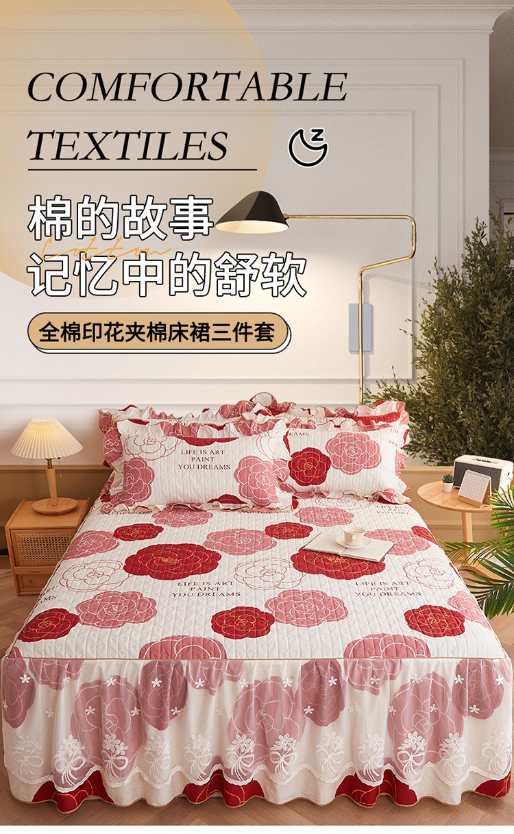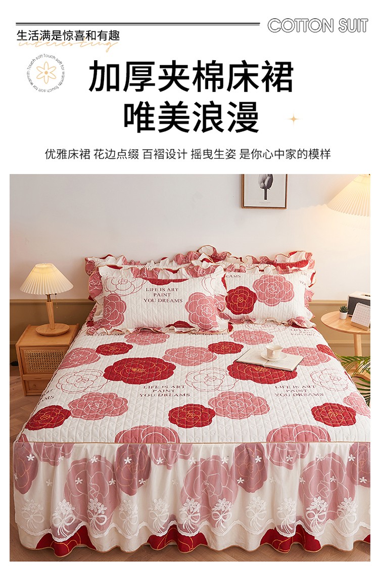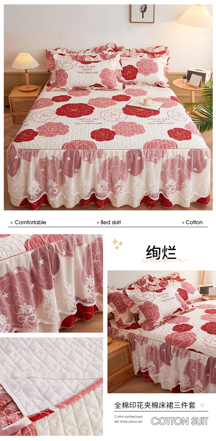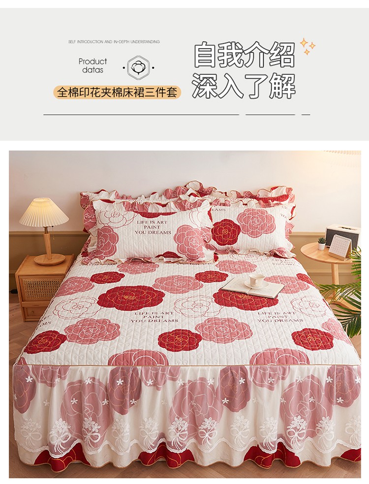 宜凡 2023新款四季款全棉夹棉床裙三件套 绚烂