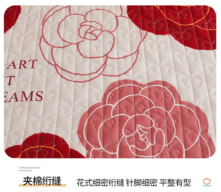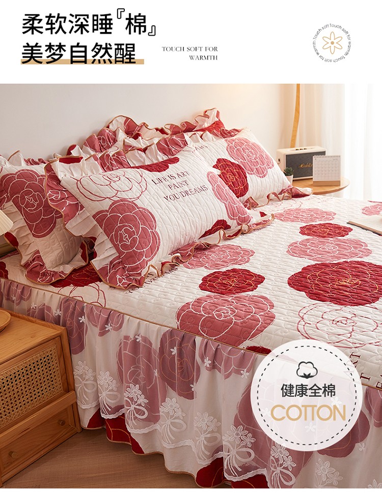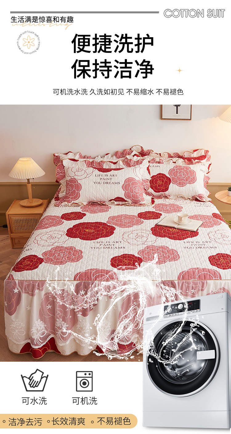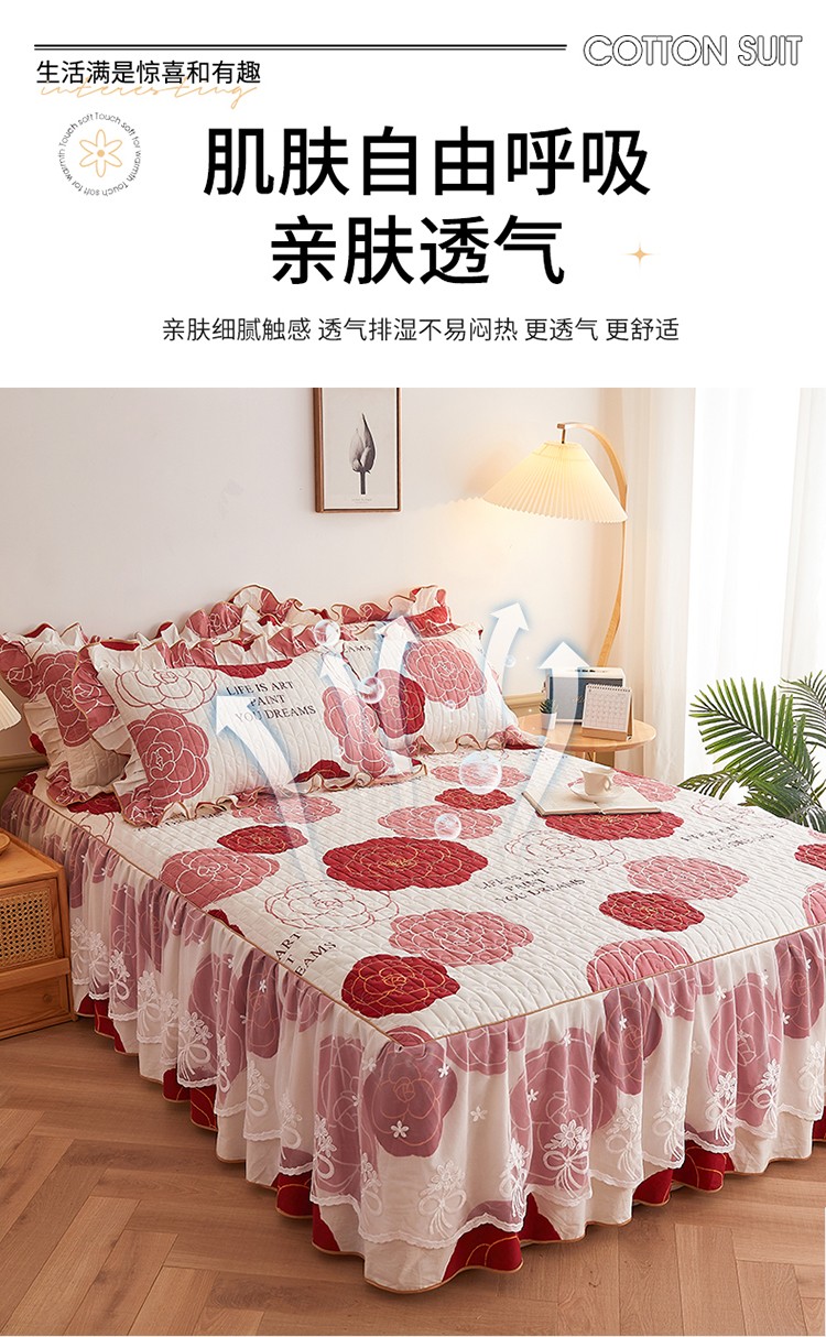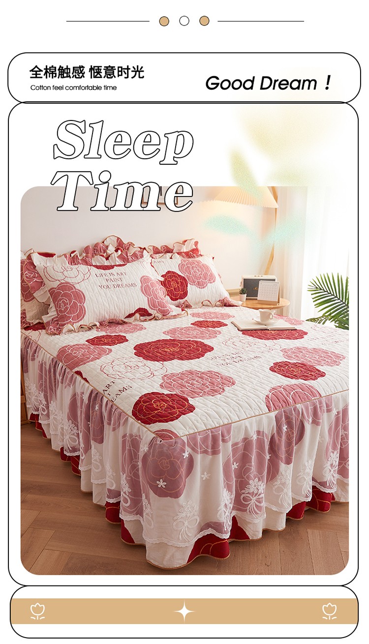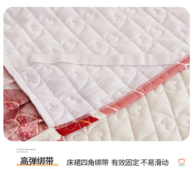 宜凡 2023新款四季款全棉夹棉床裙三件套 绚烂