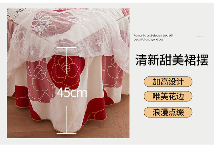 (总)宜凡家纺 2025新款婴儿绒压花全夹棉床裙四件套,韵雅-中国红,韵雅-黑天鹅
