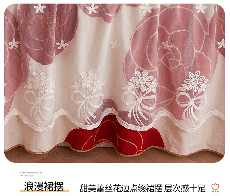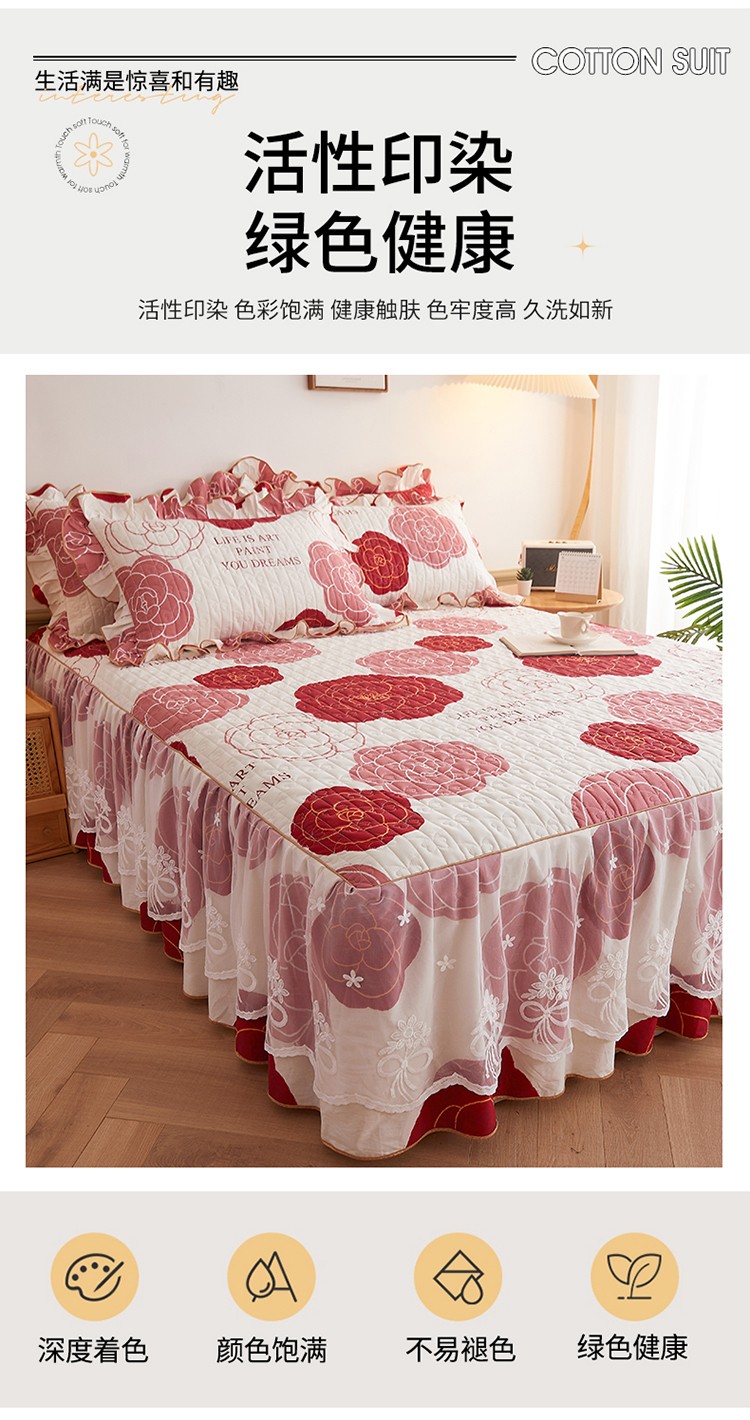 商品名称:宜凡 2023新款四季款全棉夹棉床裙三件套 绚烂