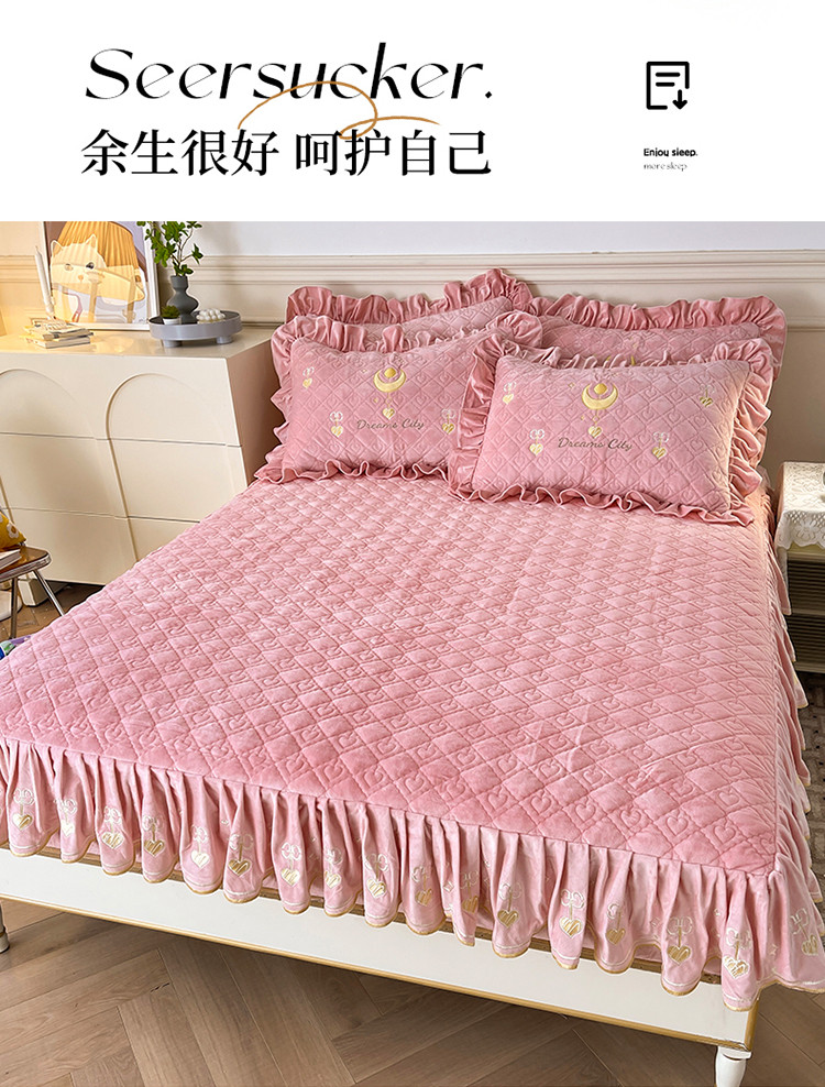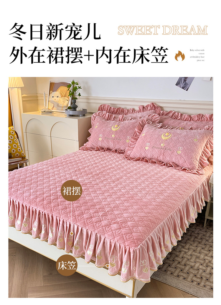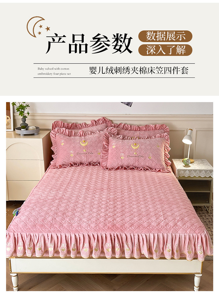 (总)宜凡家纺 2025新款兔绒提花牛奶绒夹棉床裙四件套,爱心 少女粉,爱心 粉紫,爱心 驼色,蝶舞 大红,蝶舞 米色,蝶舞 浅紫,蝶舞 玉色,简爱 苍青,简爱 豆沙紫,简爱 玉色,樱桃 苍青,樱桃 豆沙紫,樱桃 奶油白