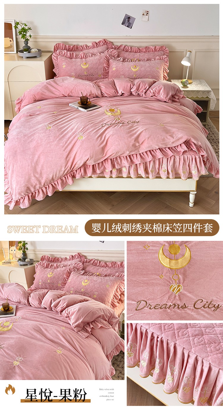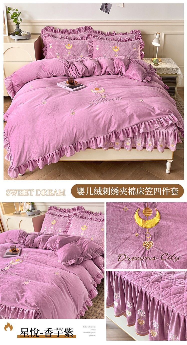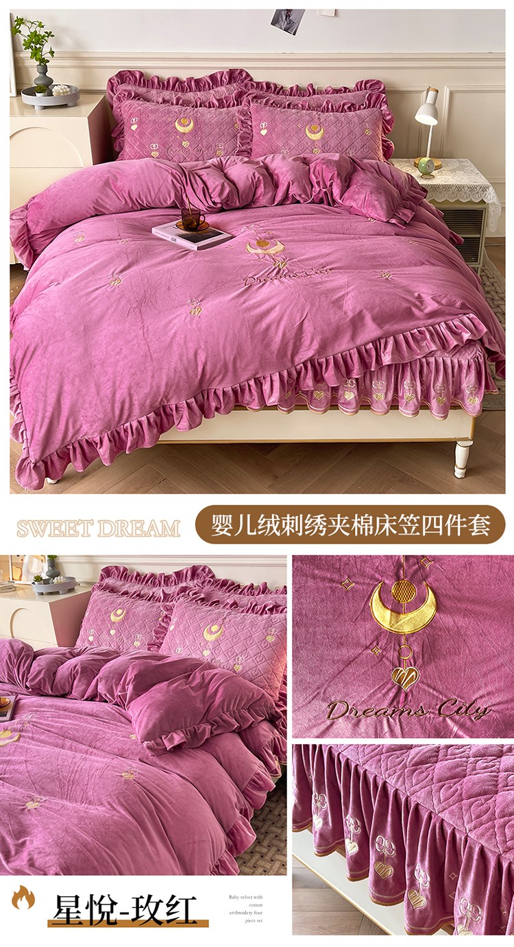 (总)宜凡家纺 2025新款兔绒提花牛奶绒夹棉床裙四件套,爱心 少女粉,爱心 粉紫,爱心 驼色,蝶舞 大红,蝶舞 米色,蝶舞 浅紫,蝶舞 玉色,简爱 苍青,简爱 豆沙紫,简爱 玉色,樱桃 苍青,樱桃 豆沙紫,樱桃 奶油白
