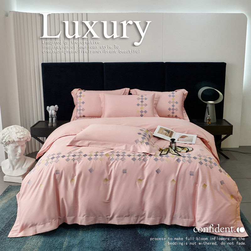(总)宅家居 2024轻奢小香风纯棉长绒棉四件套奥菲亚系列,奥菲亚-冰肌粉,奥菲亚-湖水蓝,奥菲亚-罗兰紫,奥菲亚-奶昔白,奥菲亚-松石绿,奥菲亚-香槟金