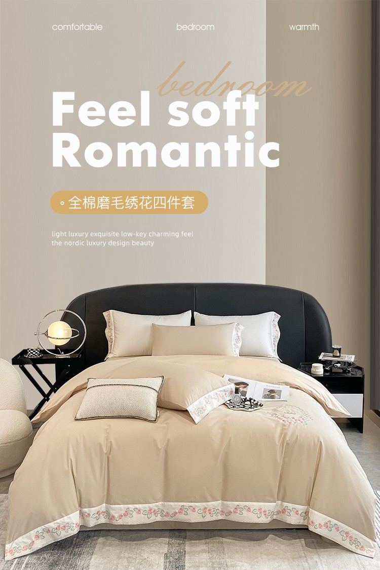 (总)理想家家纺 2025新款纯棉轻奢刺绣四件套-小秘密系列场景二,小秘密 粉,小秘密 黄,小秘密 蓝