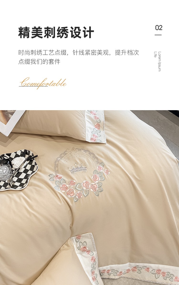 (总)理想家家纺 2025新款纯棉轻奢刺绣四件套-小秘密系列,小秘密-白,小秘密-粉,小秘密-蓝