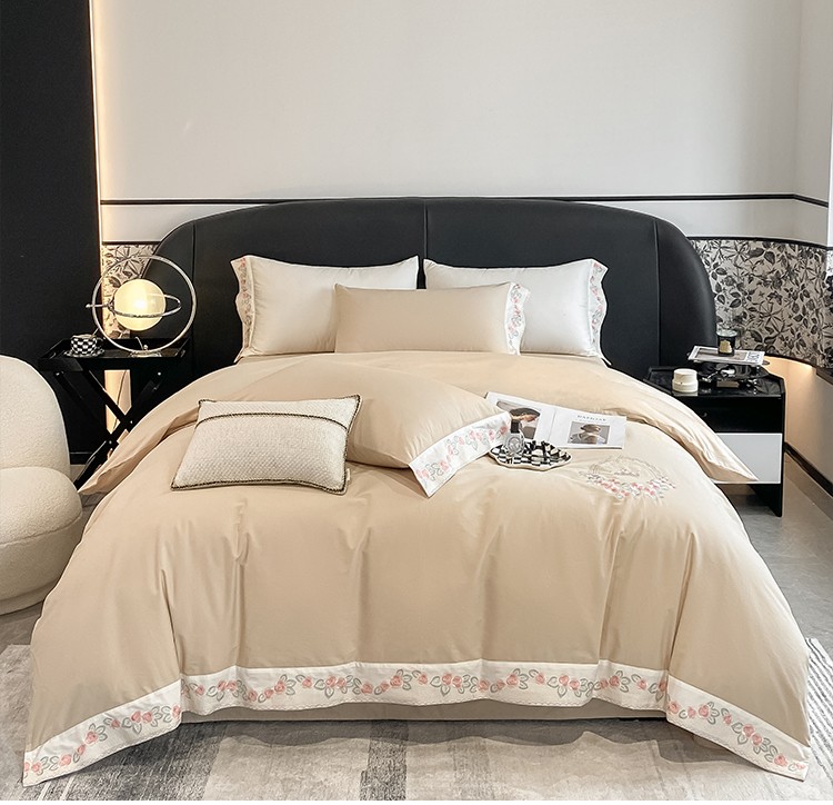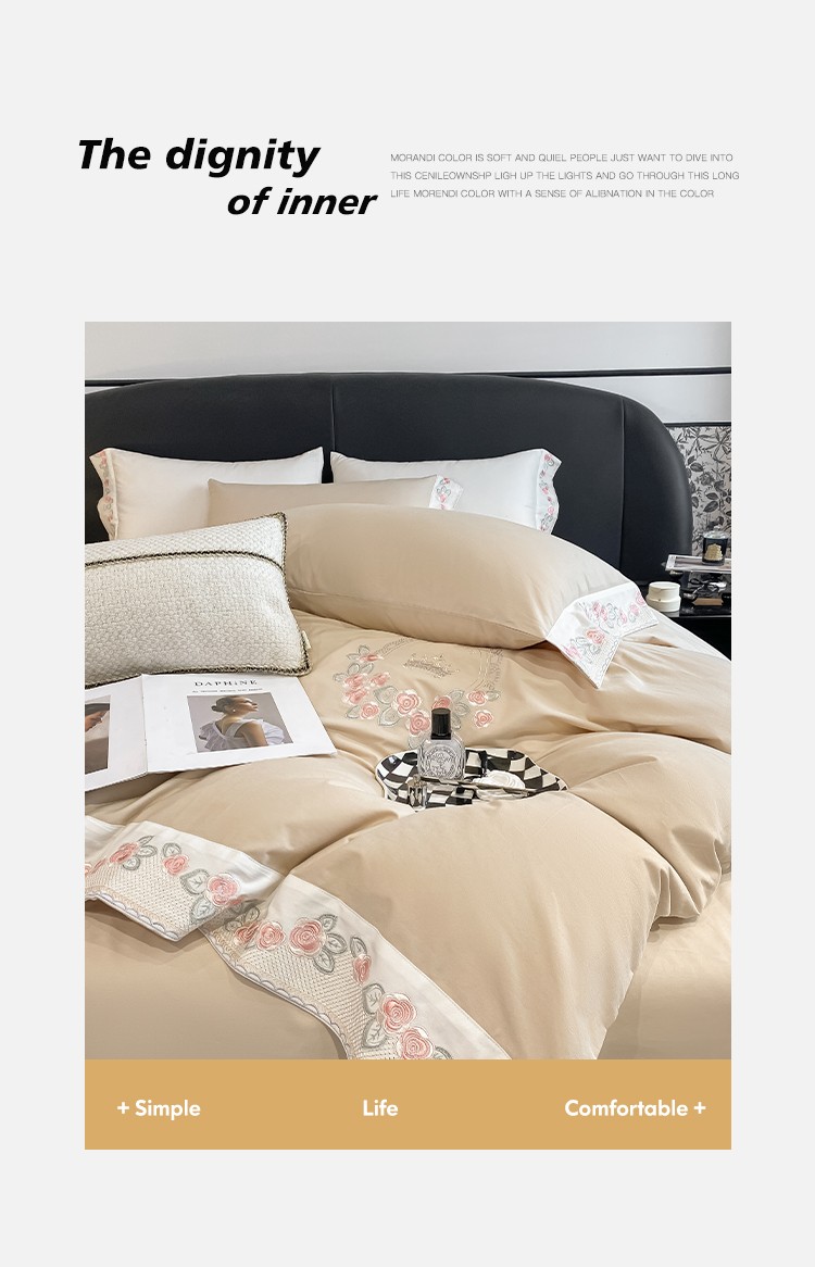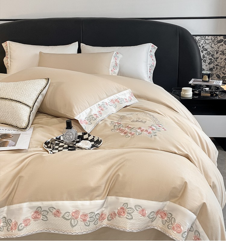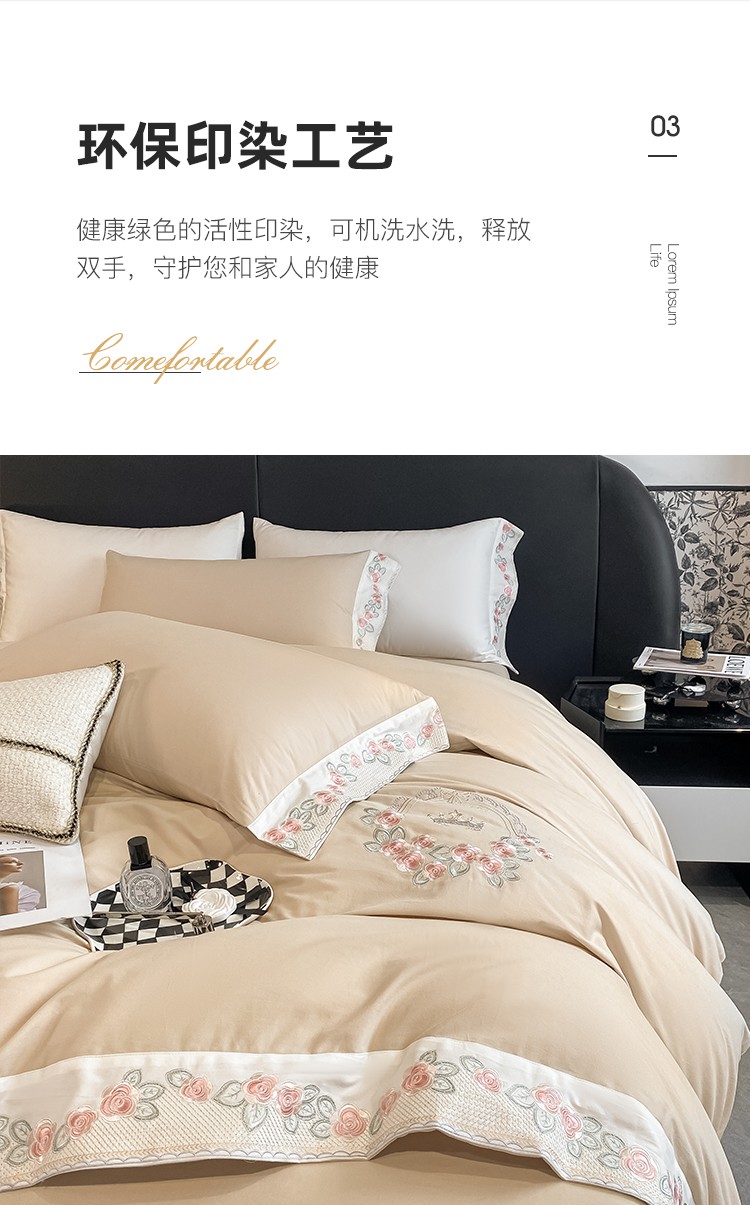 (总)理想家家纺 2025新款纯棉轻奢刺绣四件套--心愿系列场景二,心愿粉,心愿红,心愿黄,心愿蓝