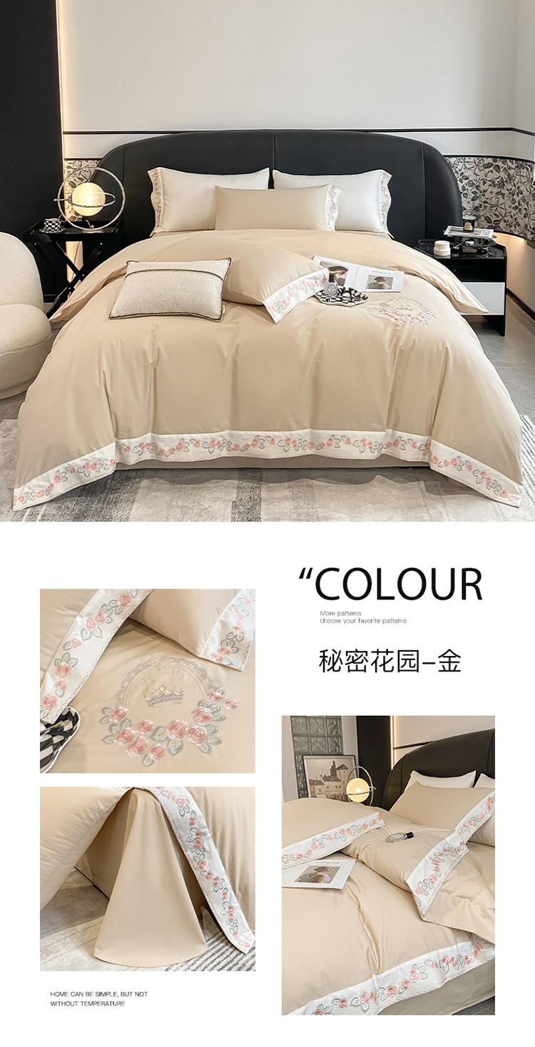 理想家 2022新款全棉磨毛绣花四件套-秘密花园 金