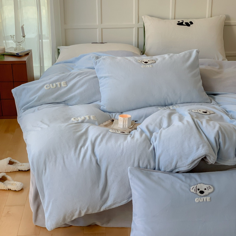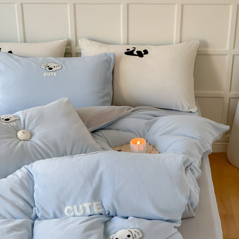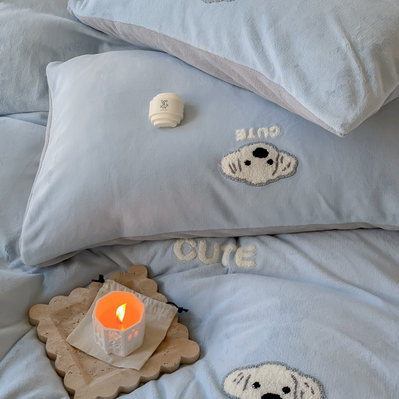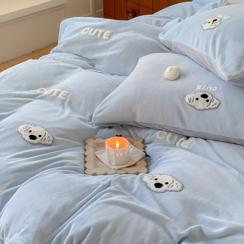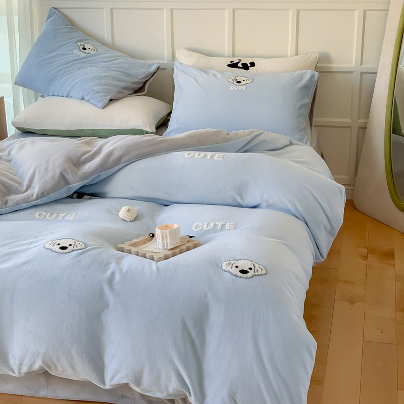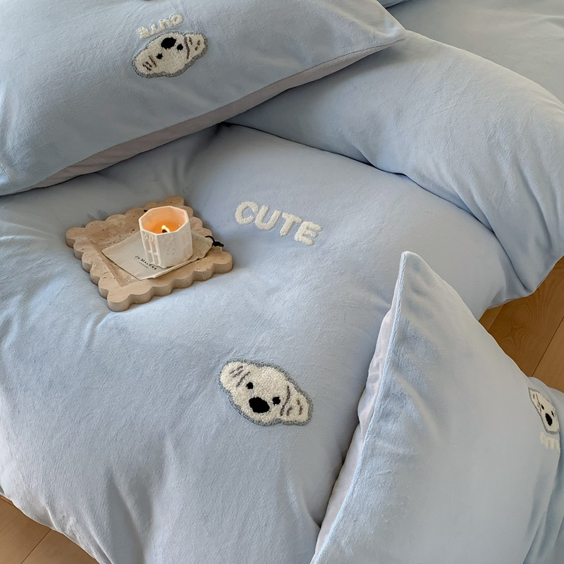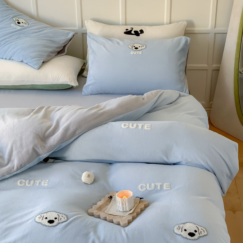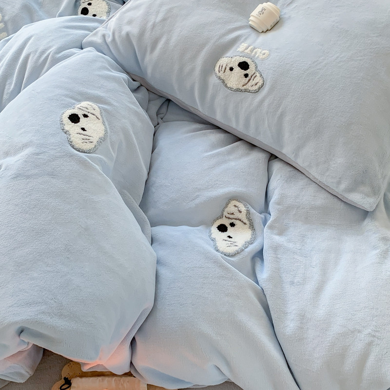 商品名称:时年 2022新款牛奶绒毛巾绣四件套 可爱修狗