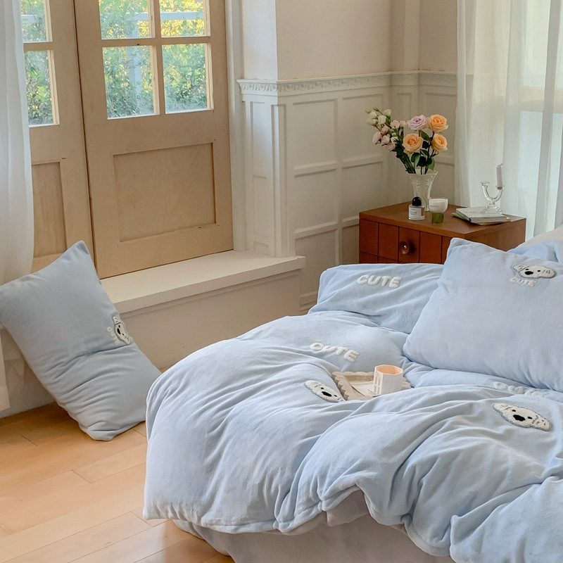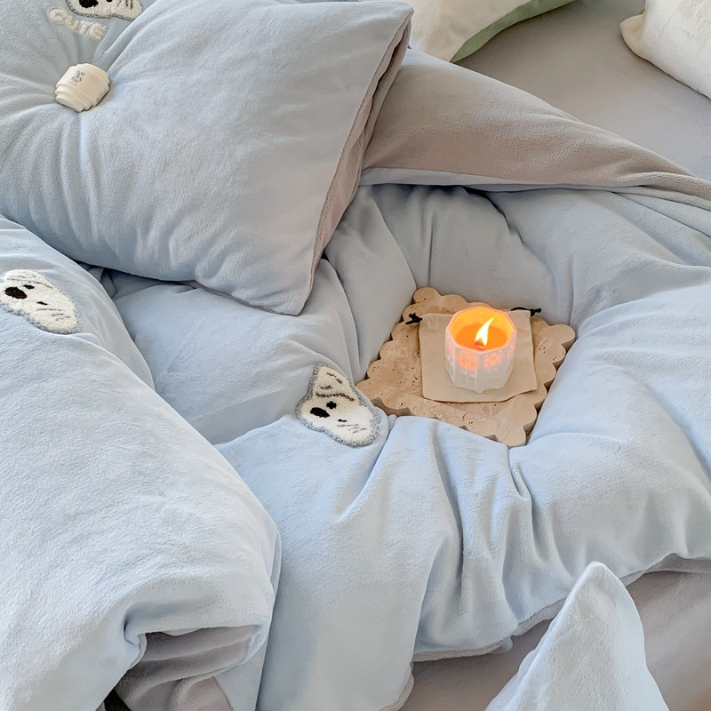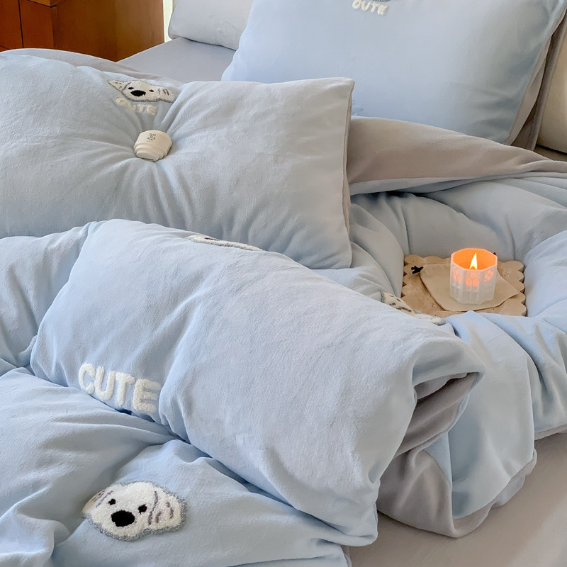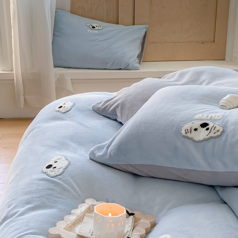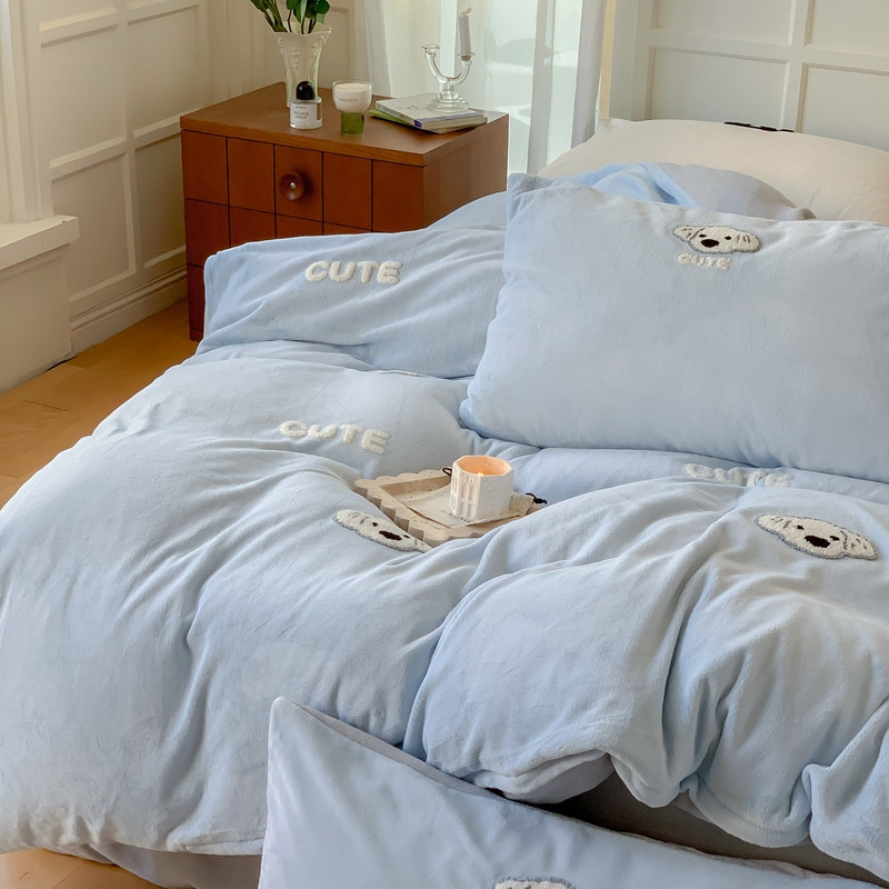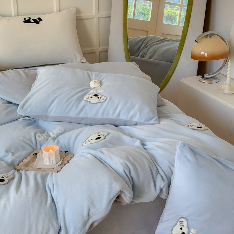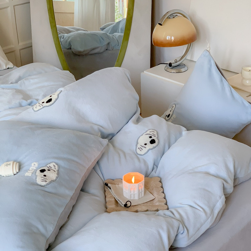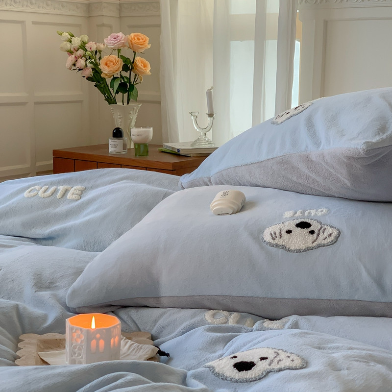 商品名称:时年 2022新款牛奶绒毛巾绣四件套 可爱修狗