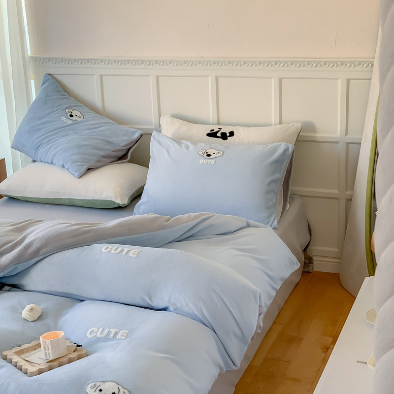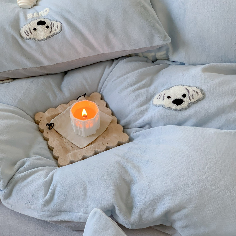 时年 2022新款牛奶绒毛巾绣四件套 可爱修狗