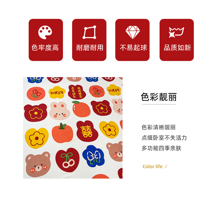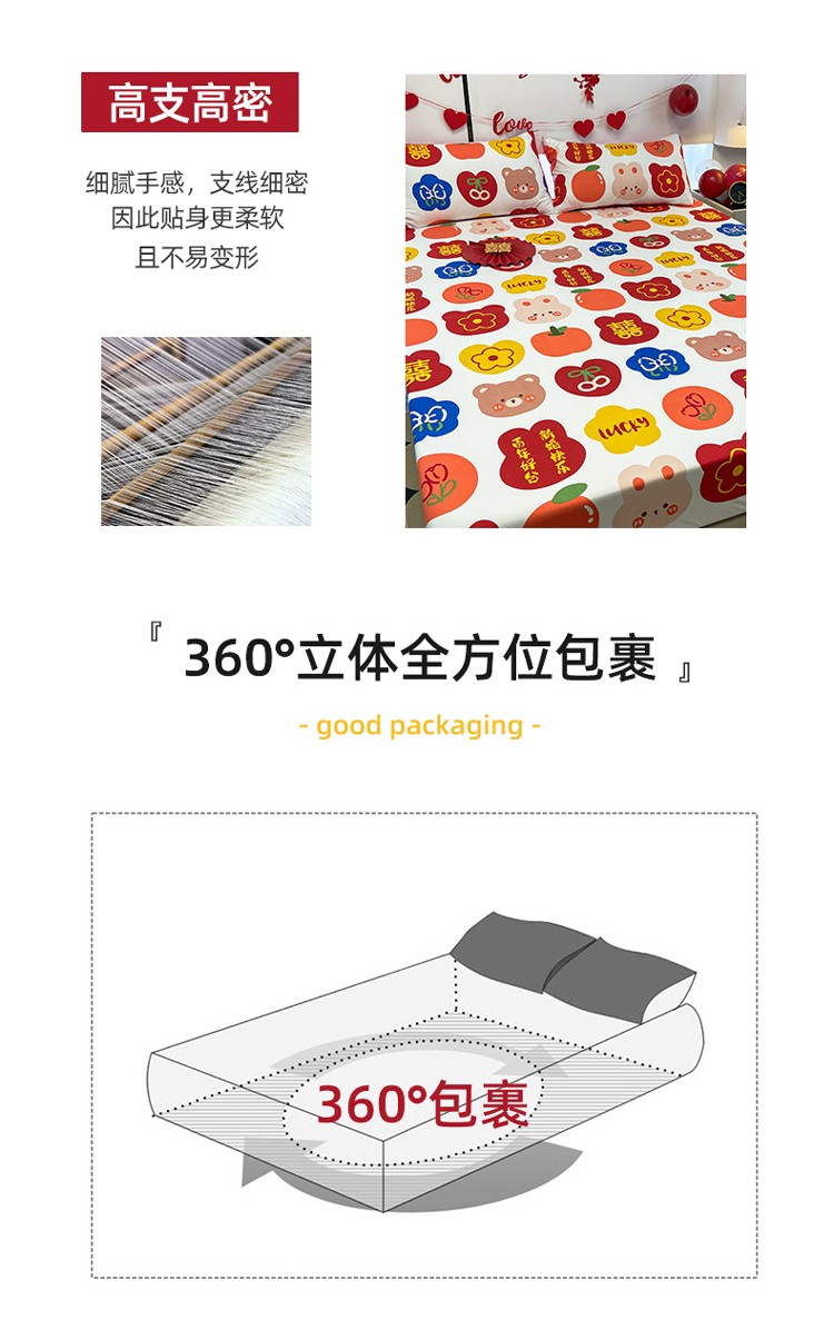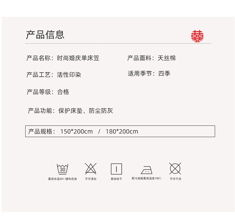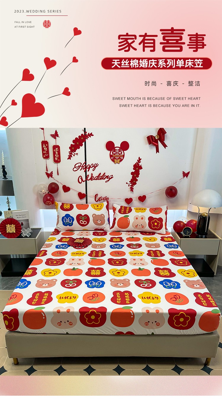 商品名称:宏源 2023年新款大红时尚磨毛婚庆单床笠 百年好合