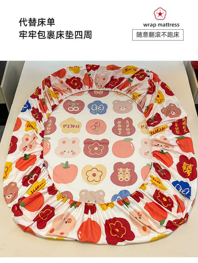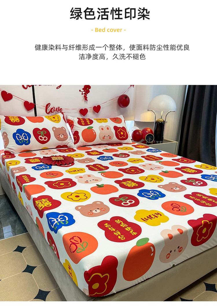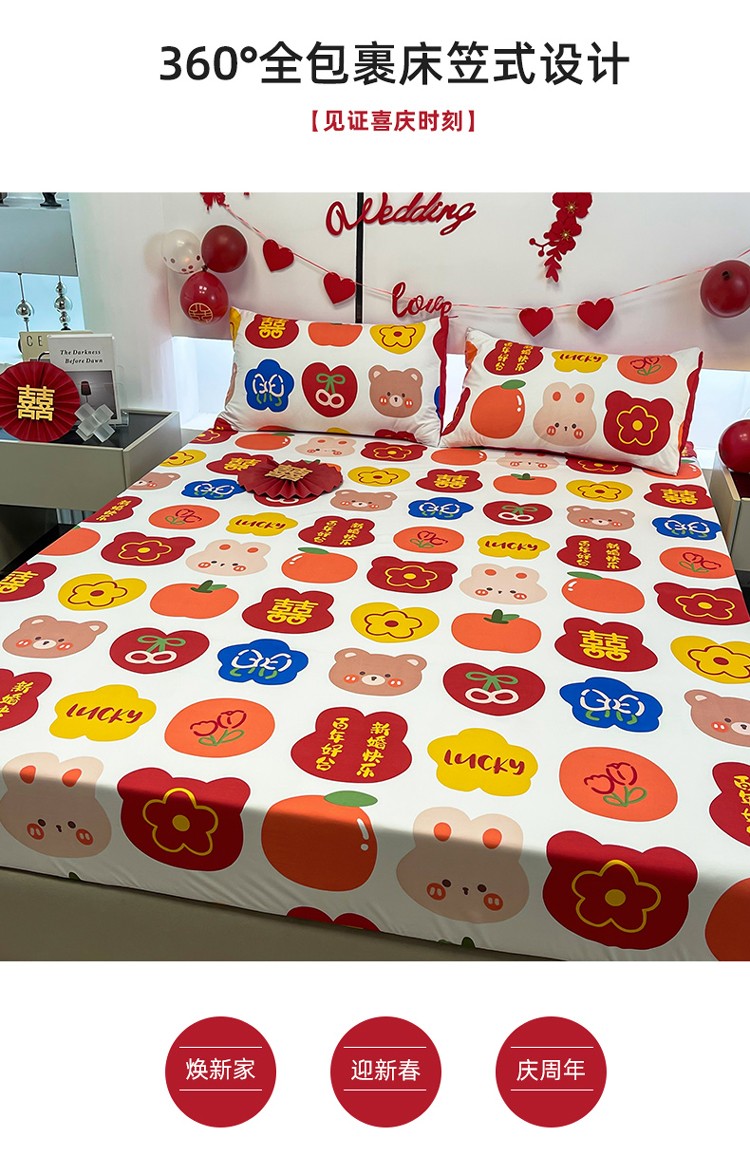 宏源 2023年新款大红时尚磨毛婚庆单床笠 百年好合