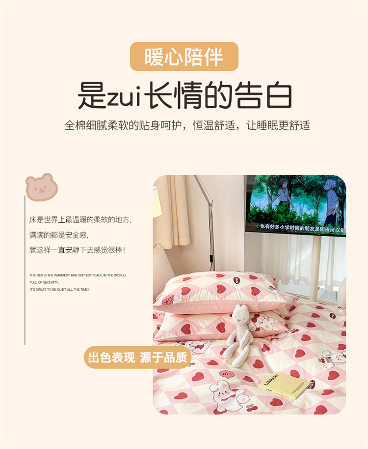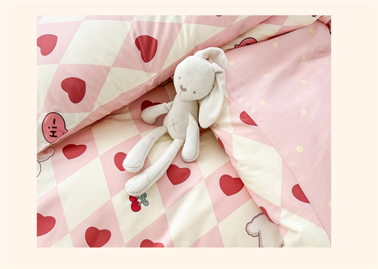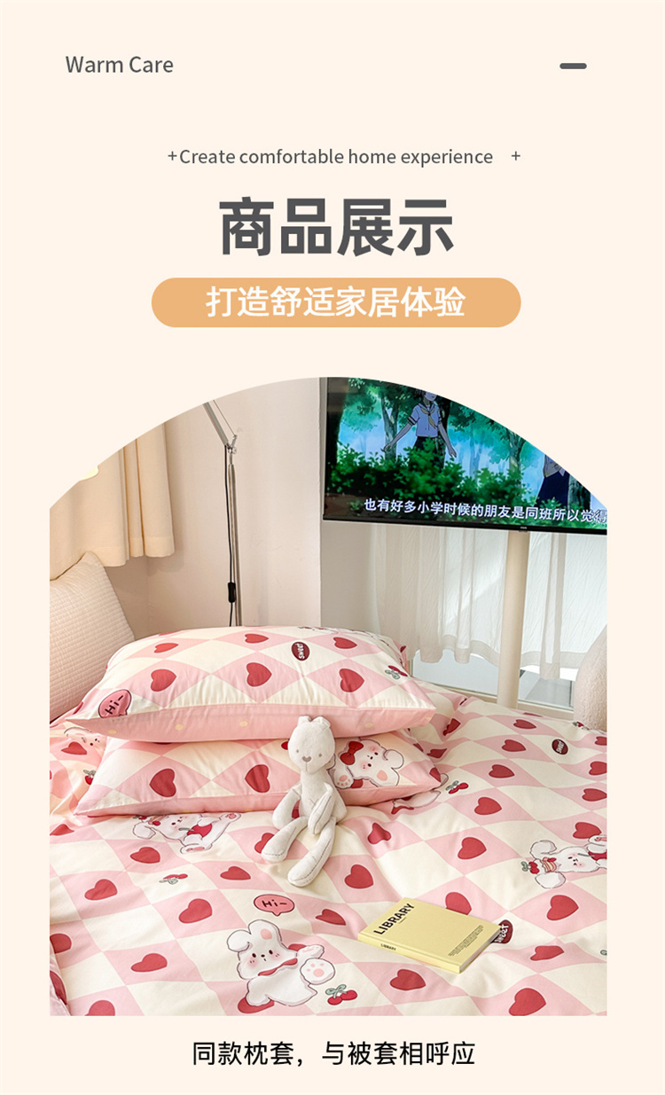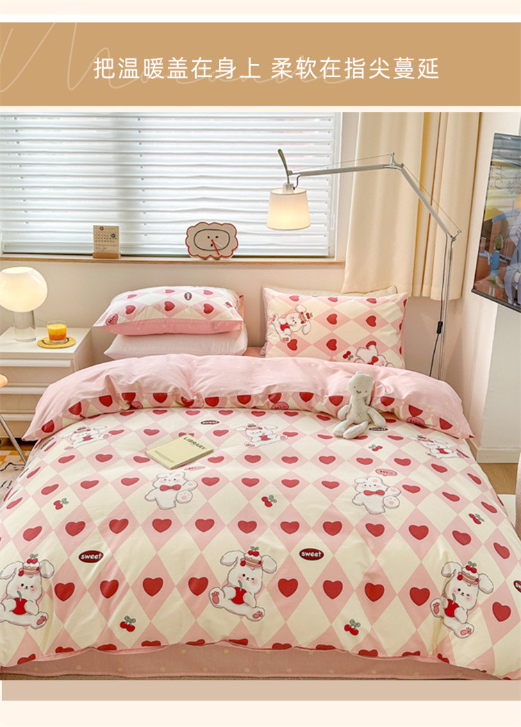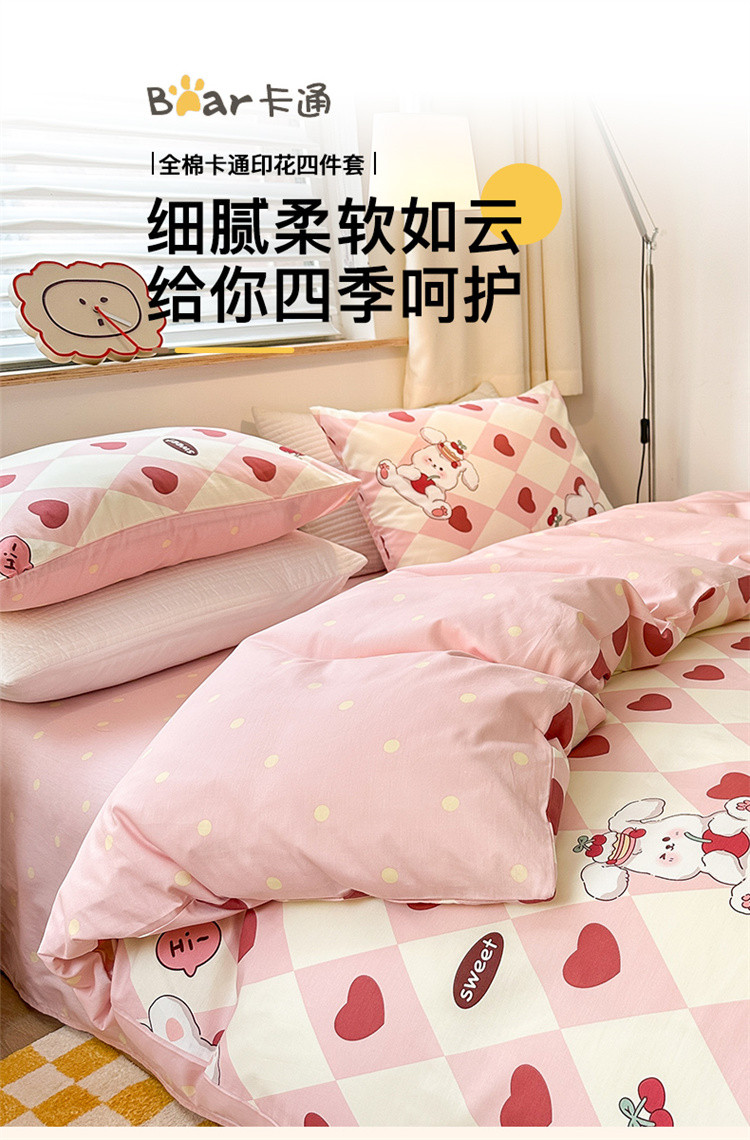 商品名称:优彩 2023新款13372全棉小清新卡通系列四件套 爱心兔