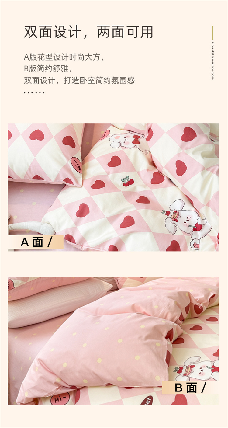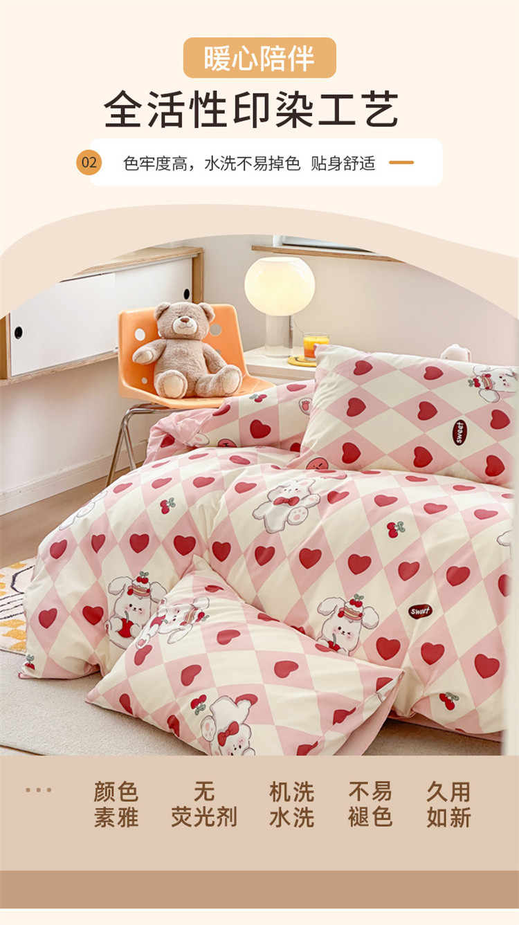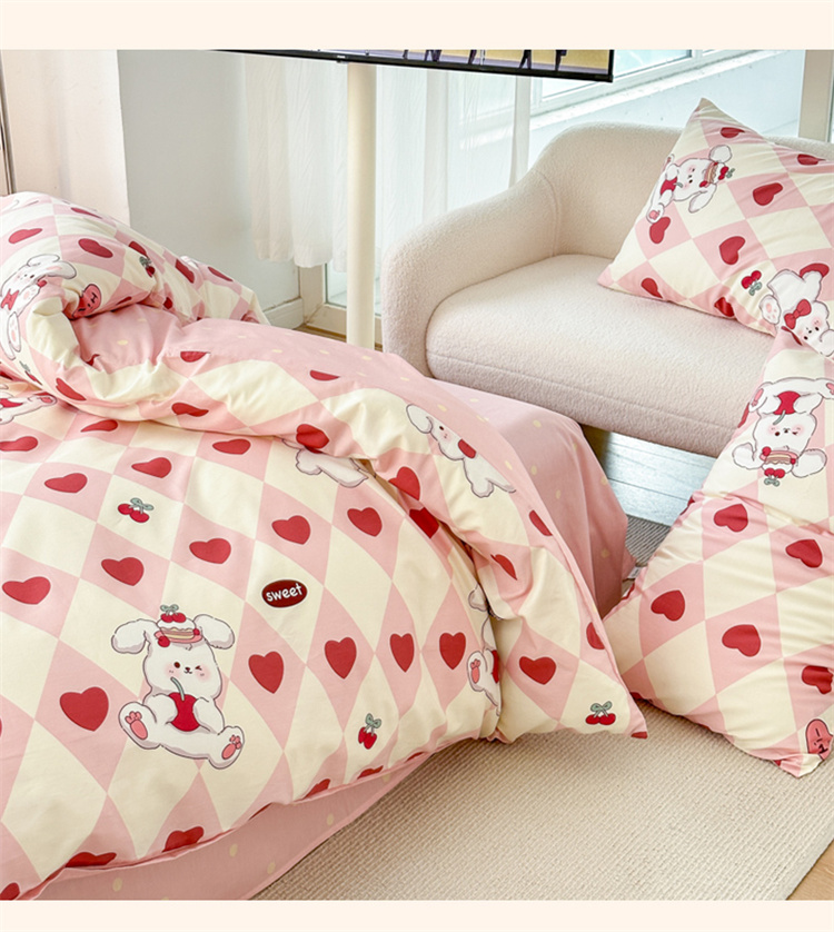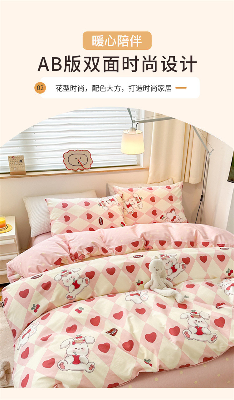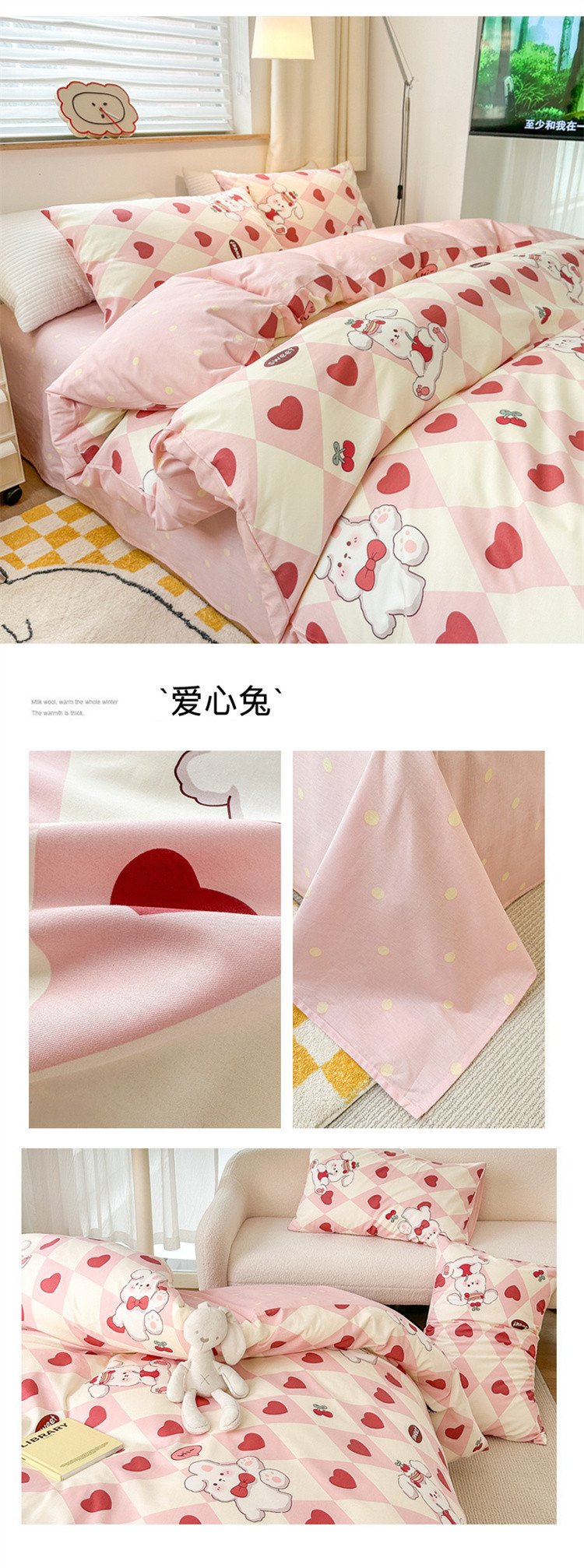 商品名称:优彩 2023新款13372全棉小清新卡通系列四件套 爱心兔