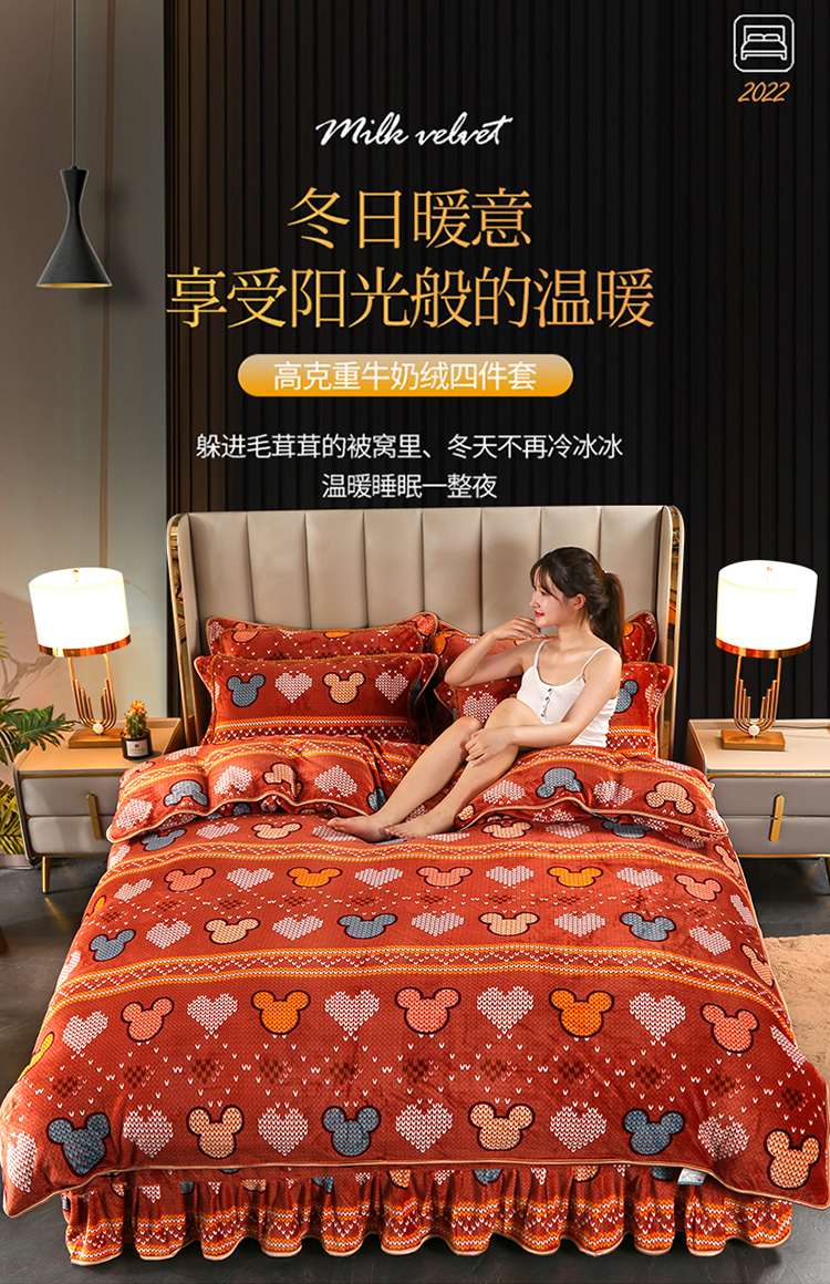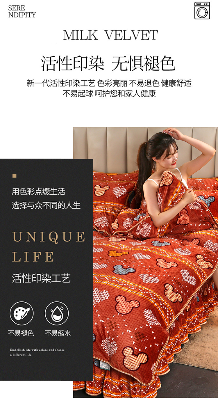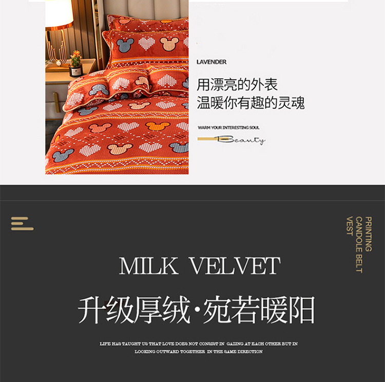 爱上家居 2023新款加厚牛奶金貂绒四件套 青春
