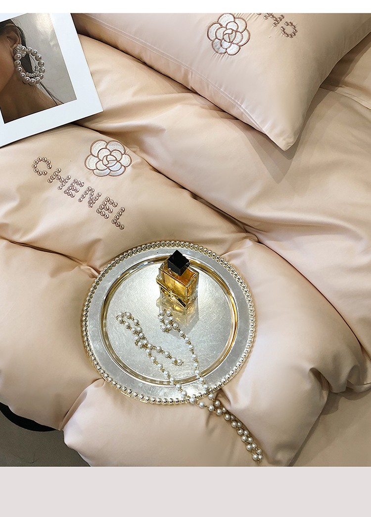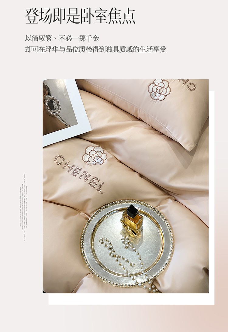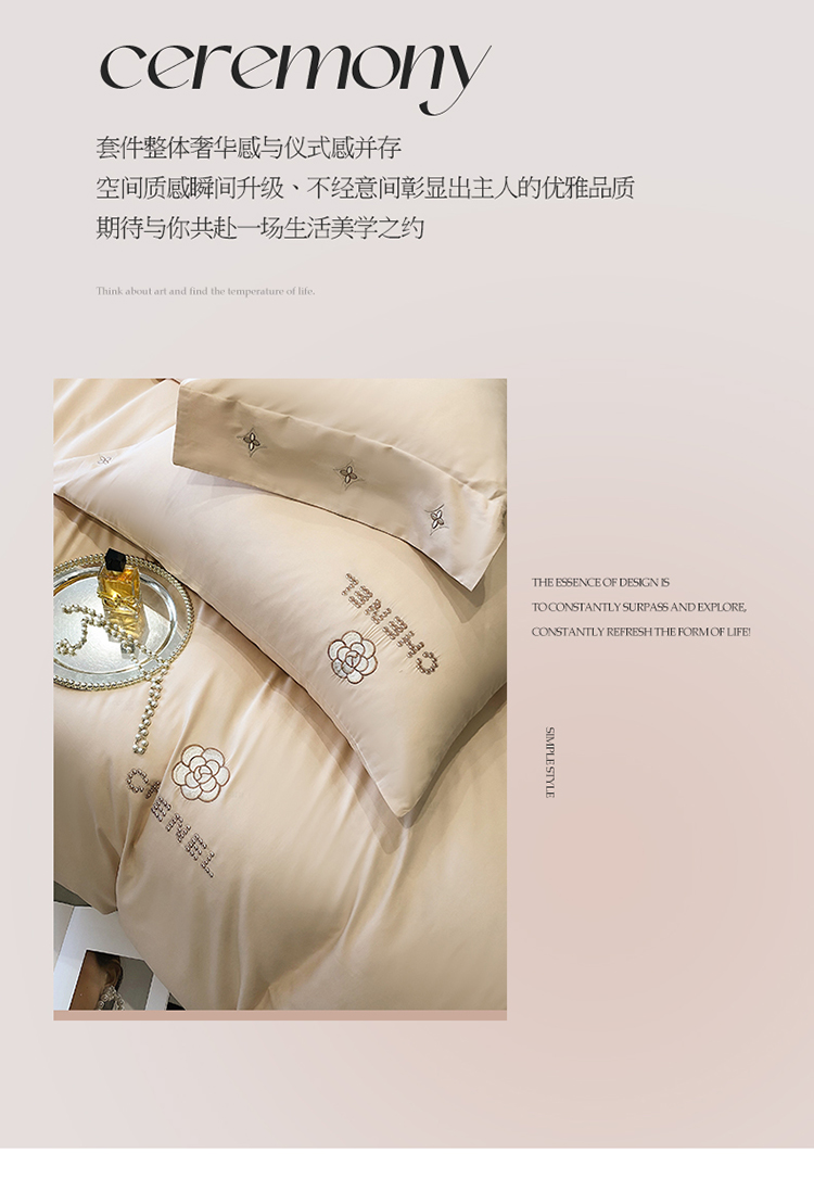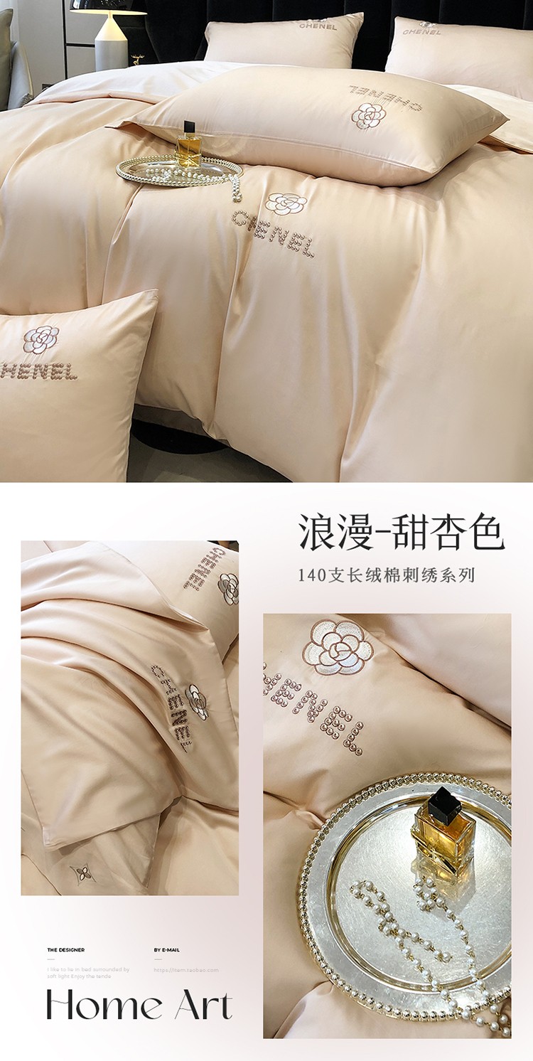 凯磊 新款高支高密.长绒棉刺绣四件套--浪漫 浪漫-甜杏色