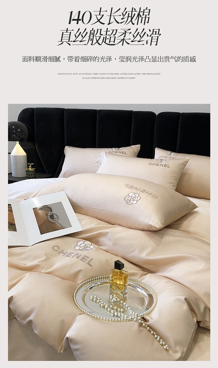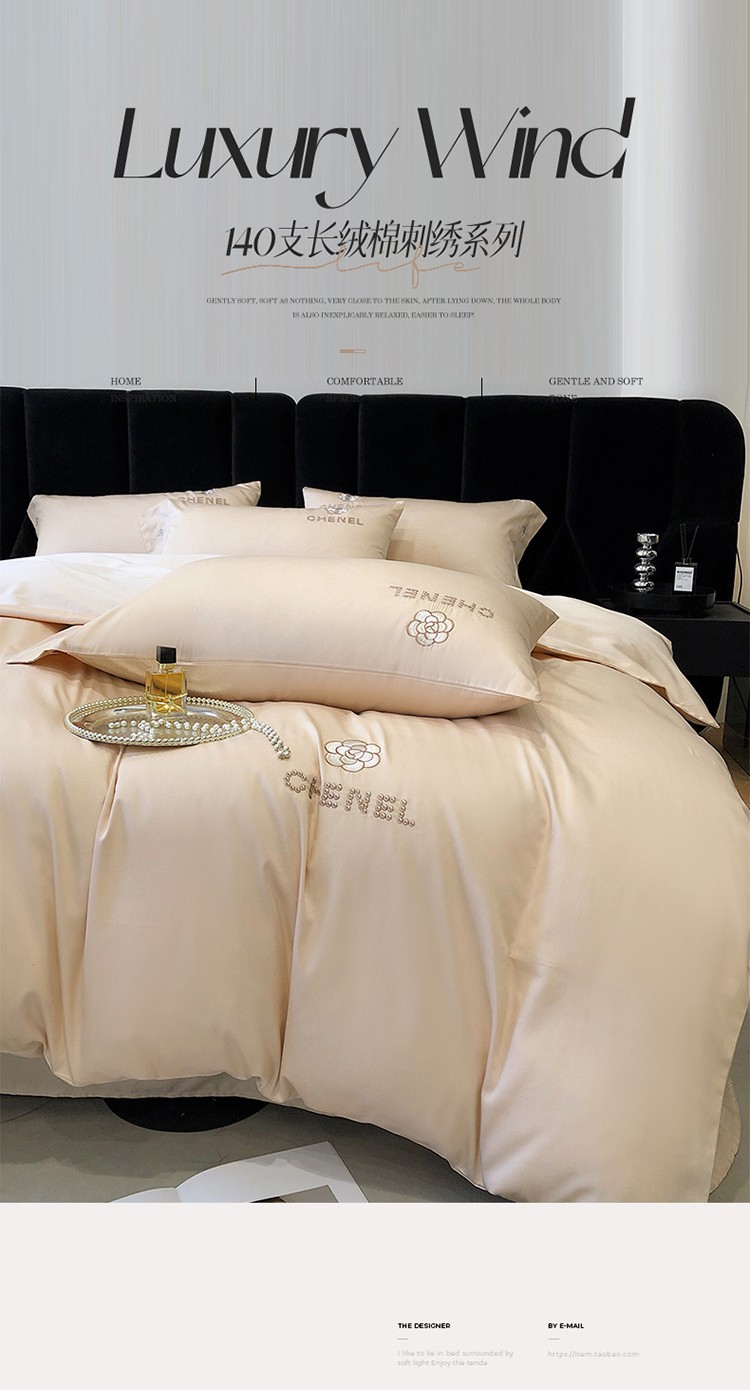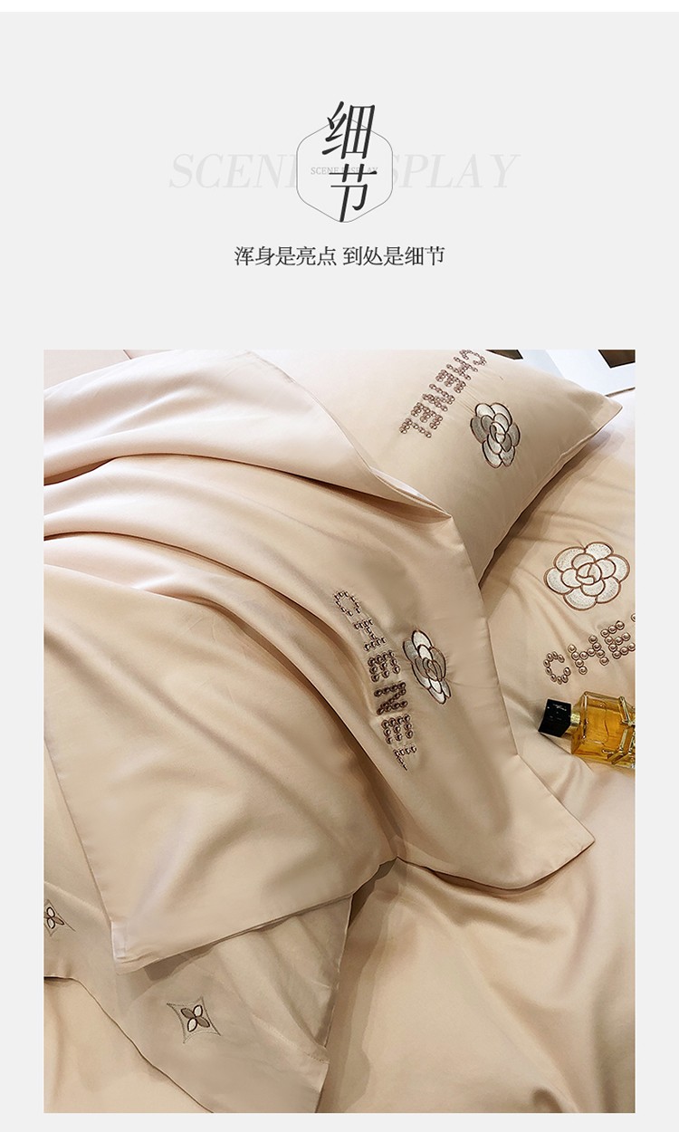 凯磊 新款高支高密.长绒棉刺绣四件套--浪漫 浪漫-甜杏色