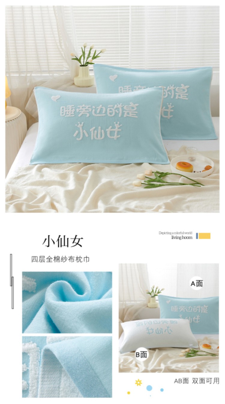当前位置: 91家纺网 > 商品网购 > 居家日用 > 毛巾/浴巾/浴袍 > 浴巾方巾毛巾套件 > 棠薇家纺 2023新款全棉双层枕巾纱布款 双层款 小仙女52*75cm/对