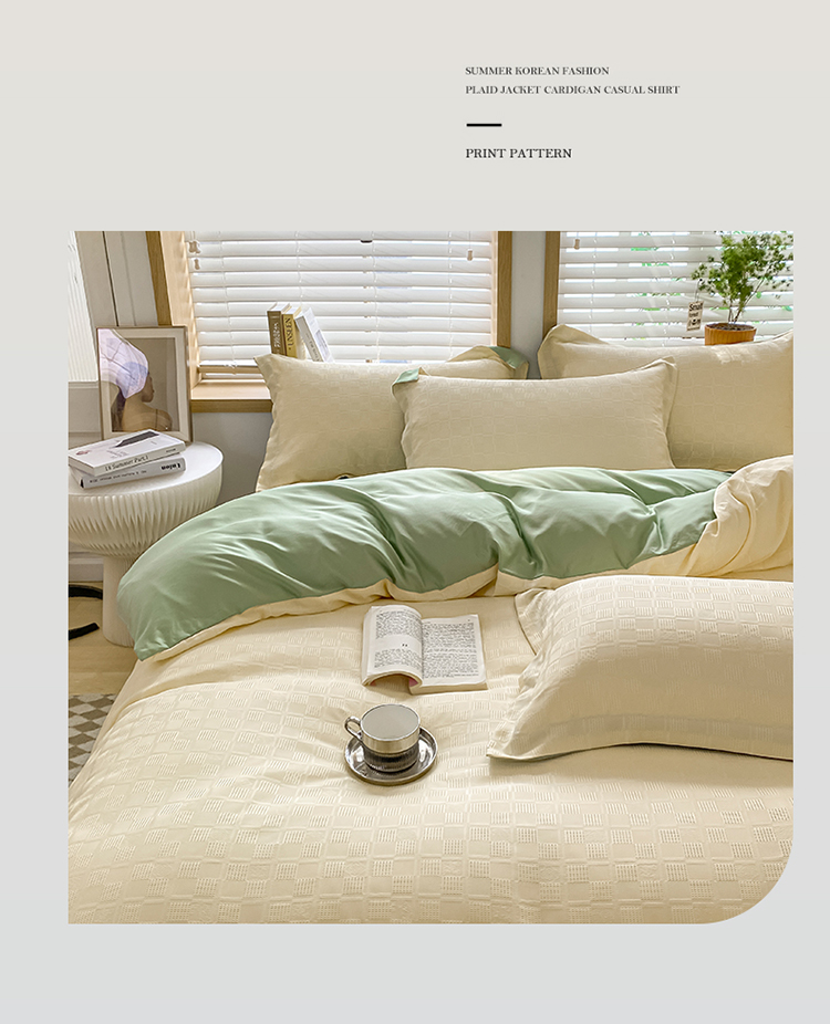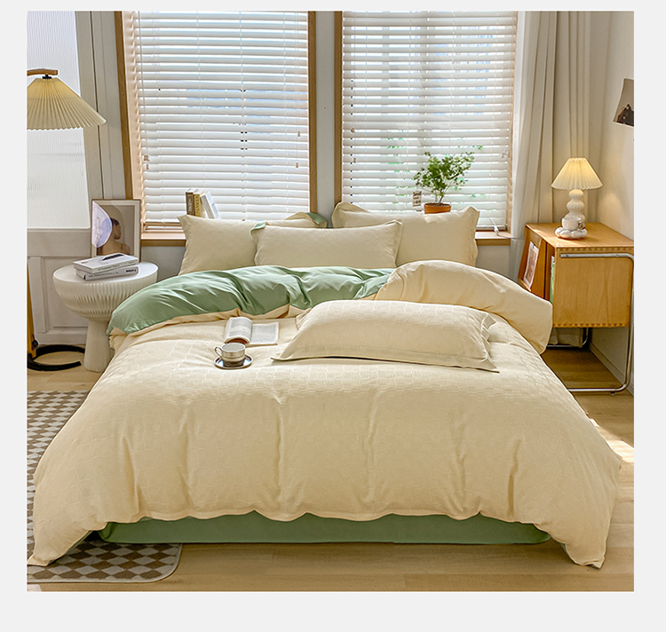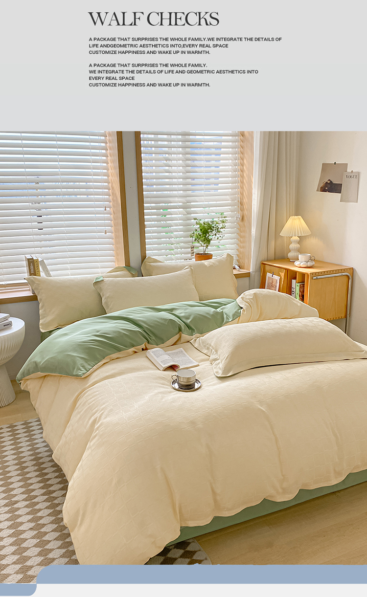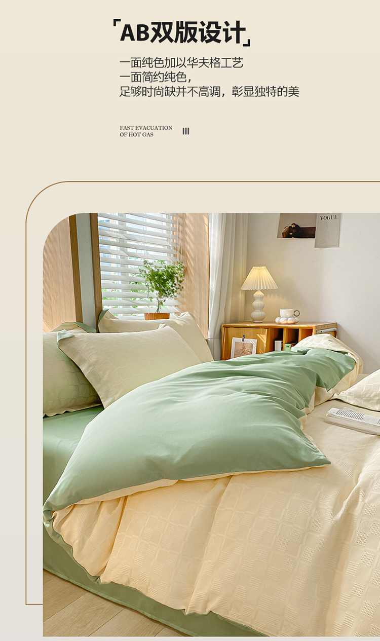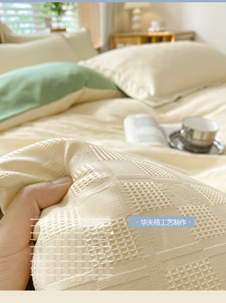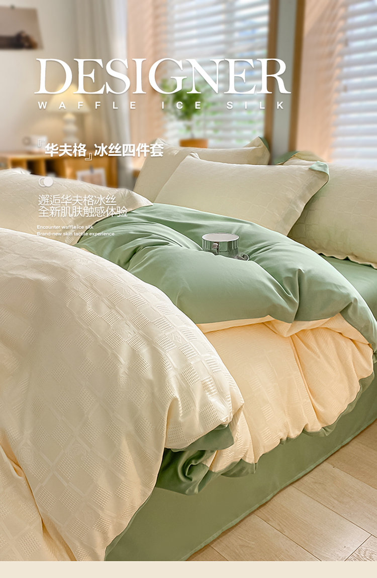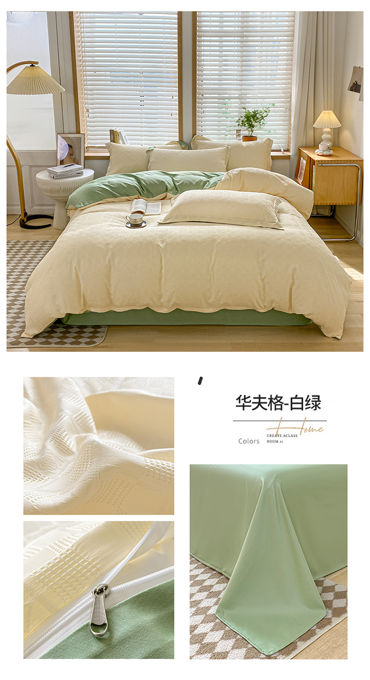 当前位置: 91家纺网 > 商品网购 > 床品套件 > 四件套 > 化纤活性四件套 > 骏腾家纺 2023新款华夫格冰丝四件套 华夫格-白绿