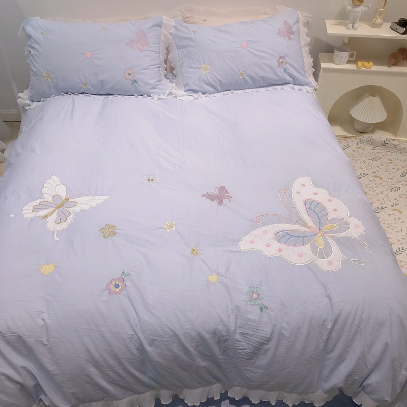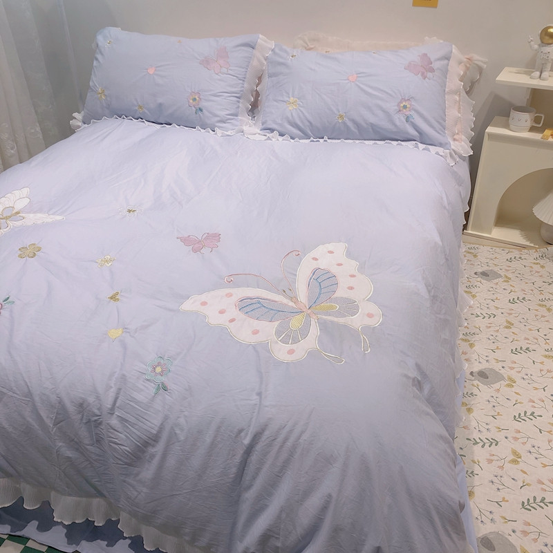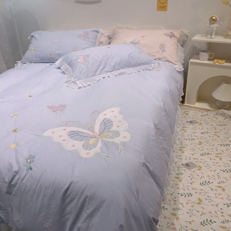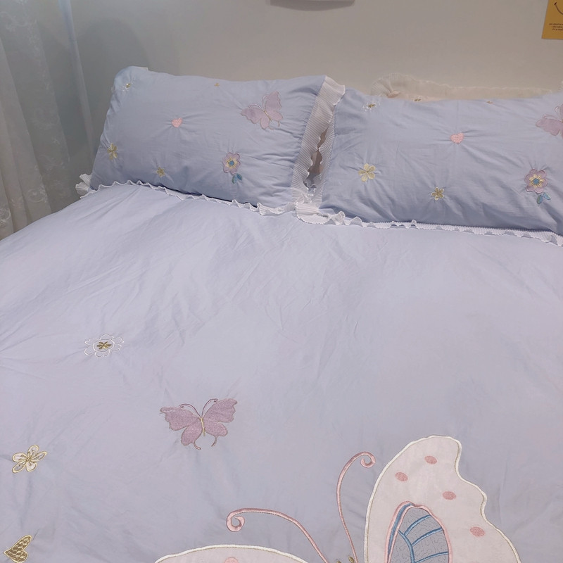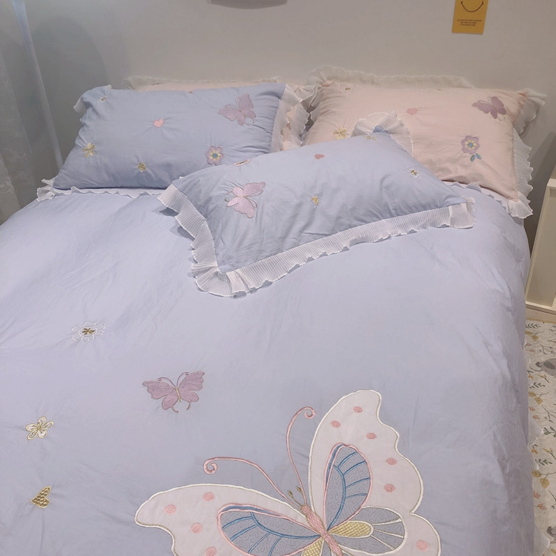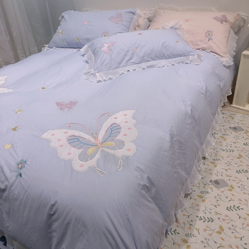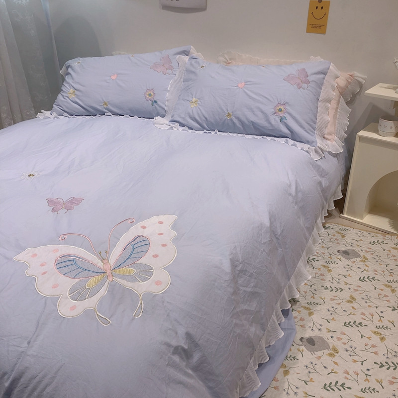 梵克保罗 新款母婴级全棉水洗棉绣花四件套-蝴蝶夫人 蝴蝶夫人-兰