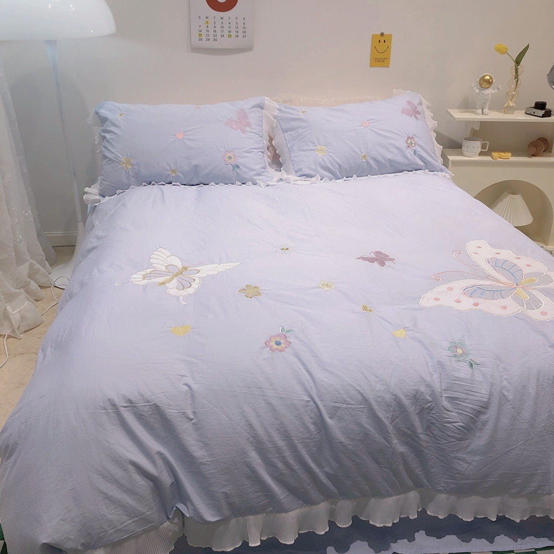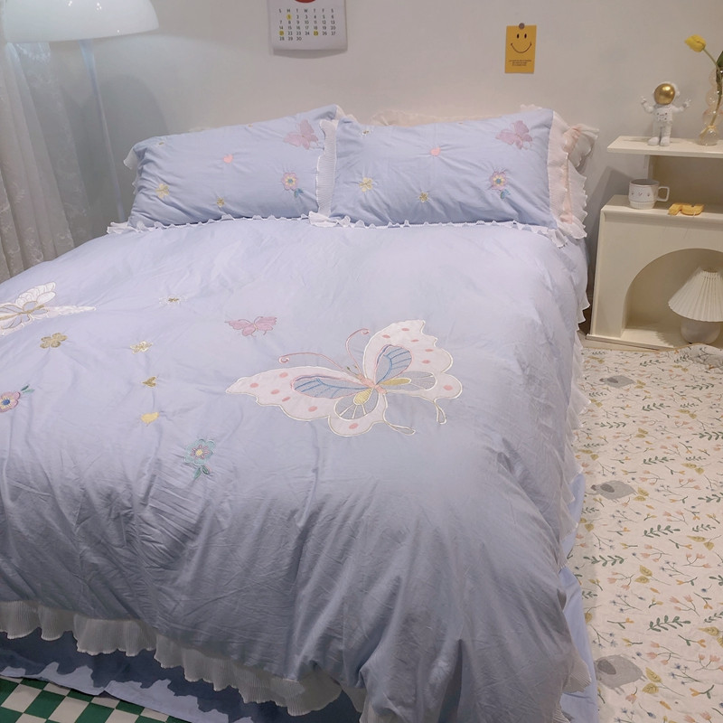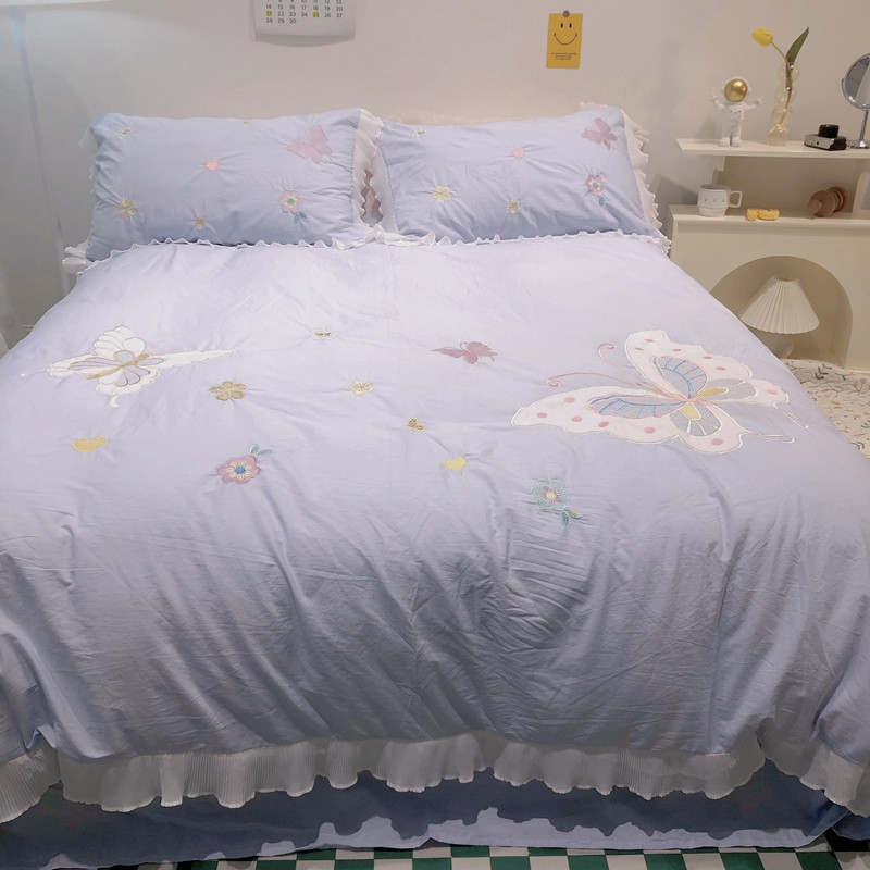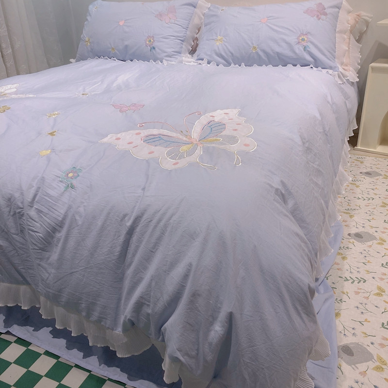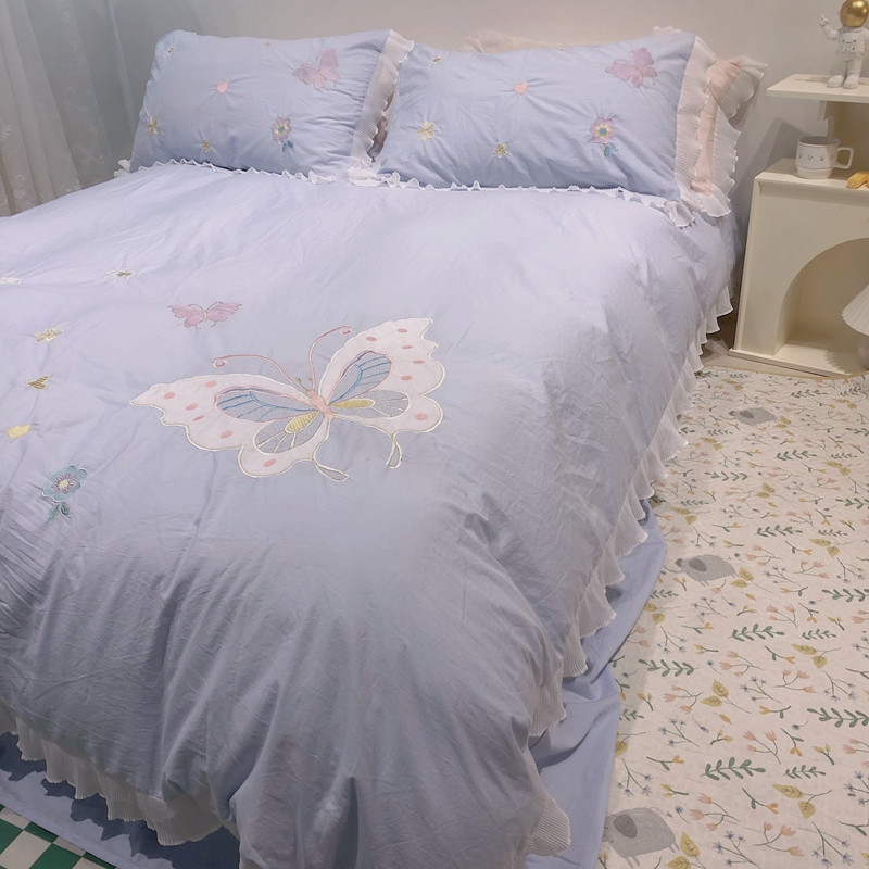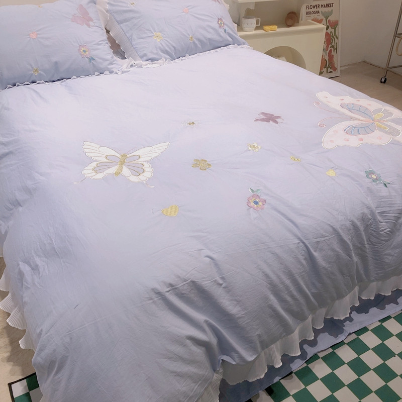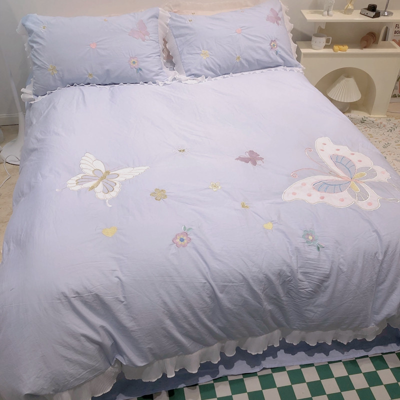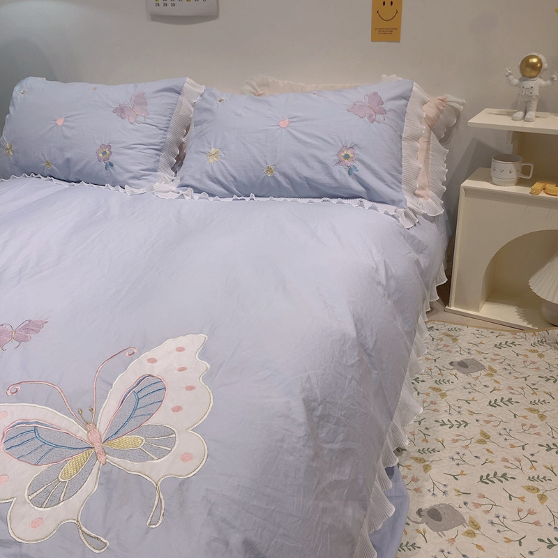 梵克保罗 新款母婴级全棉水洗棉绣花四件套-蝴蝶夫人 蝴蝶夫人-兰