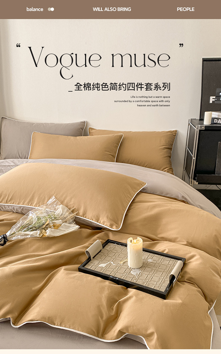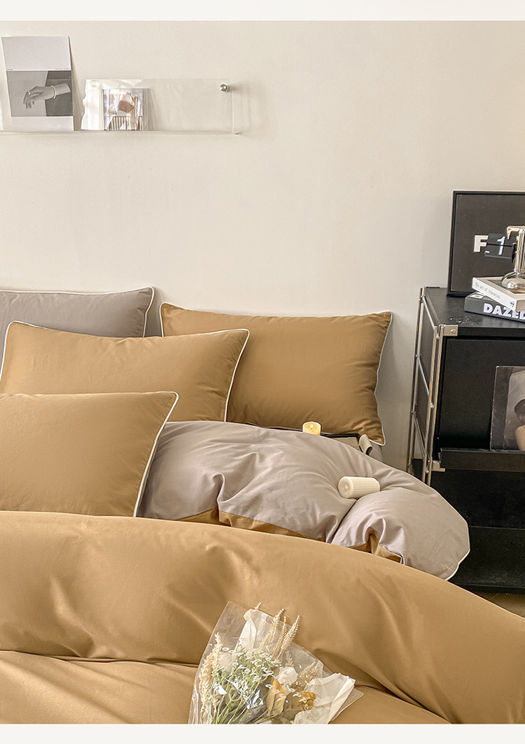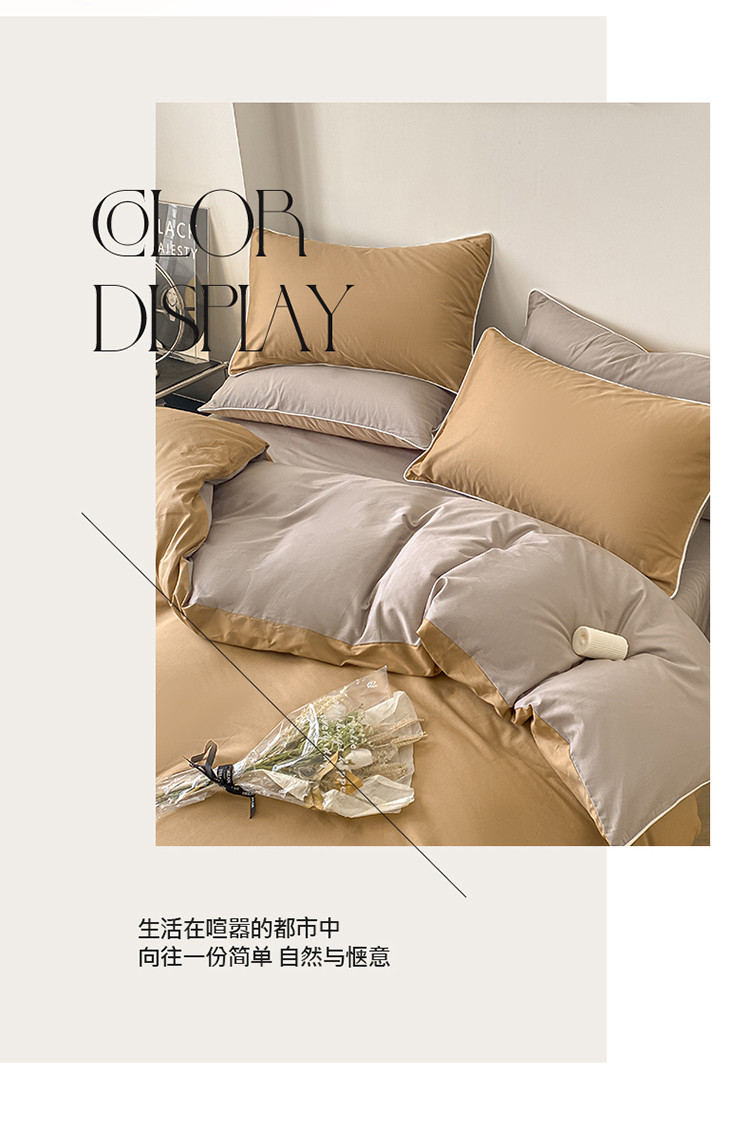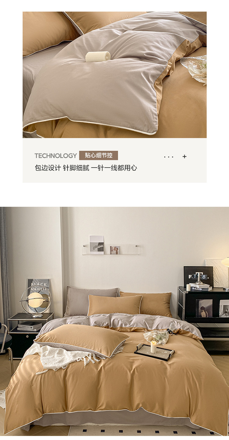 商品名称:万盛家纺 2025新款全棉纯棉纯色拼色简约四件套 咖-浅灰