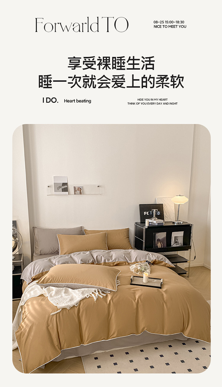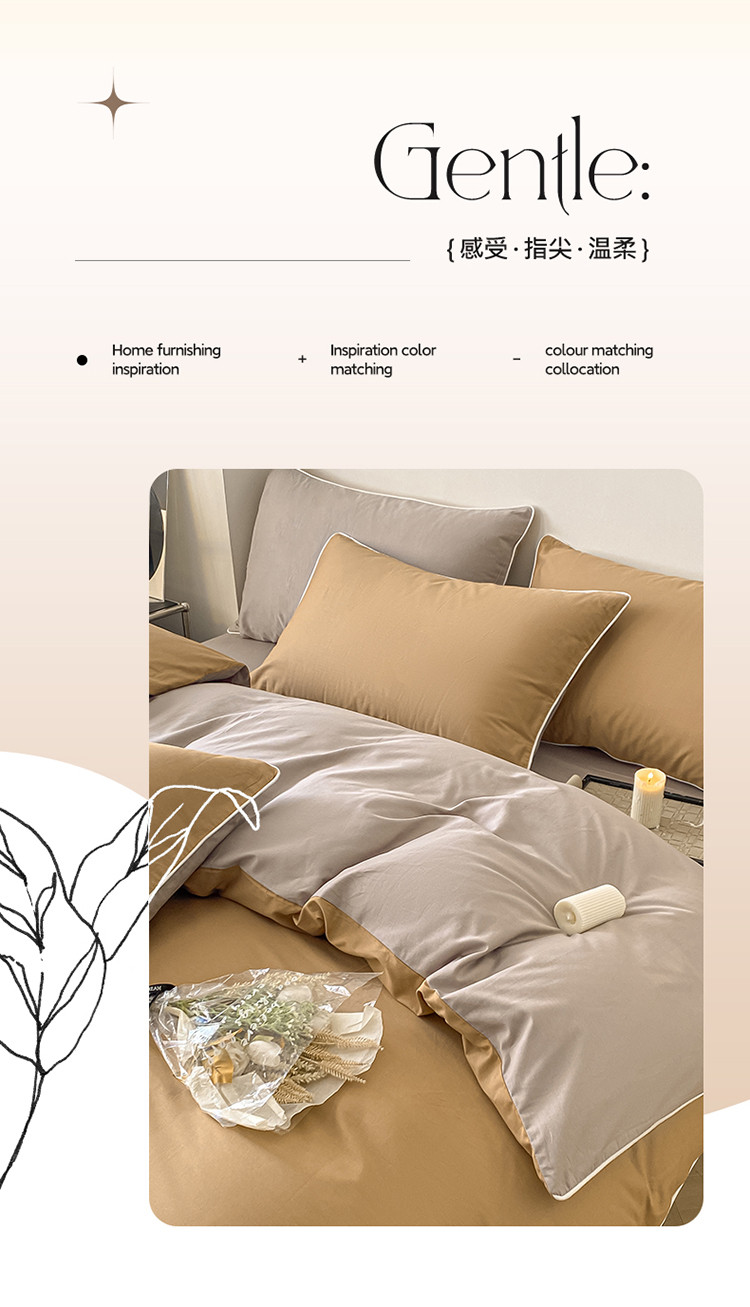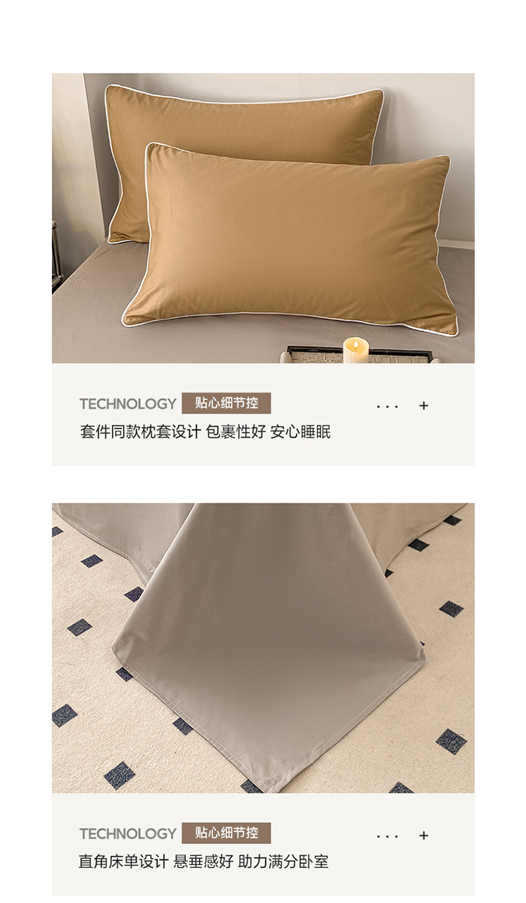 商品名称:万盛家纺 2025新款全棉纯棉纯色拼色简约四件套 咖-浅灰