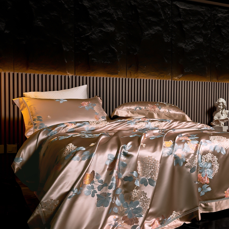 (总)晋瑞红顶鹅绒馆 新款全真丝数码印花四件套,浅若清风