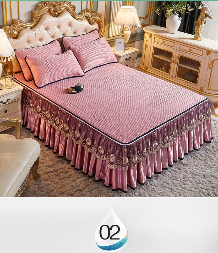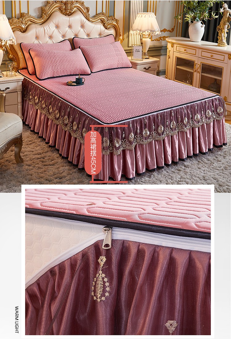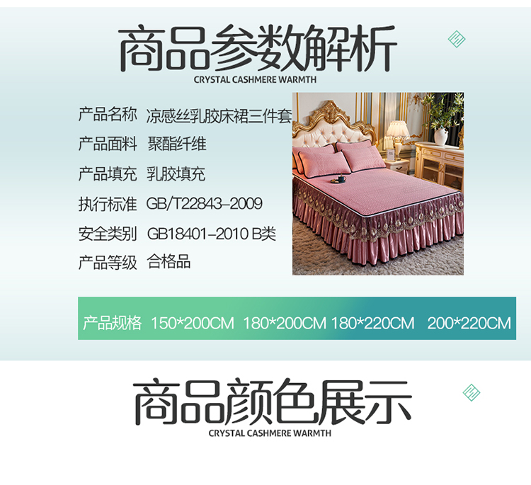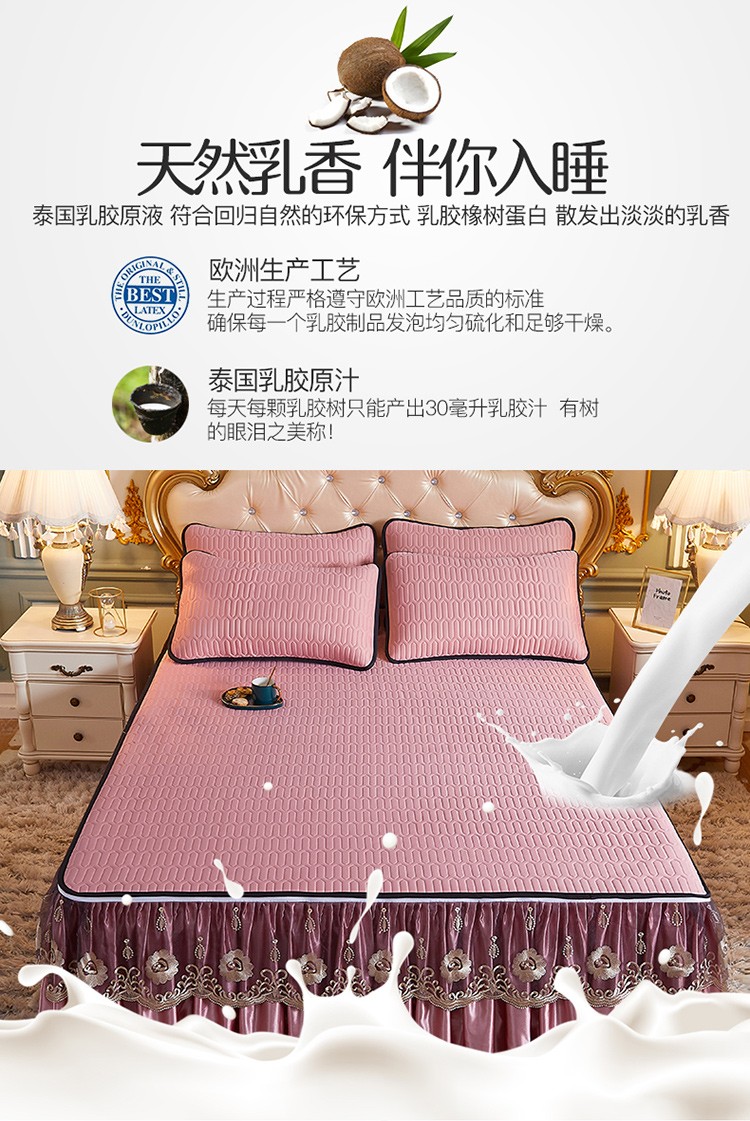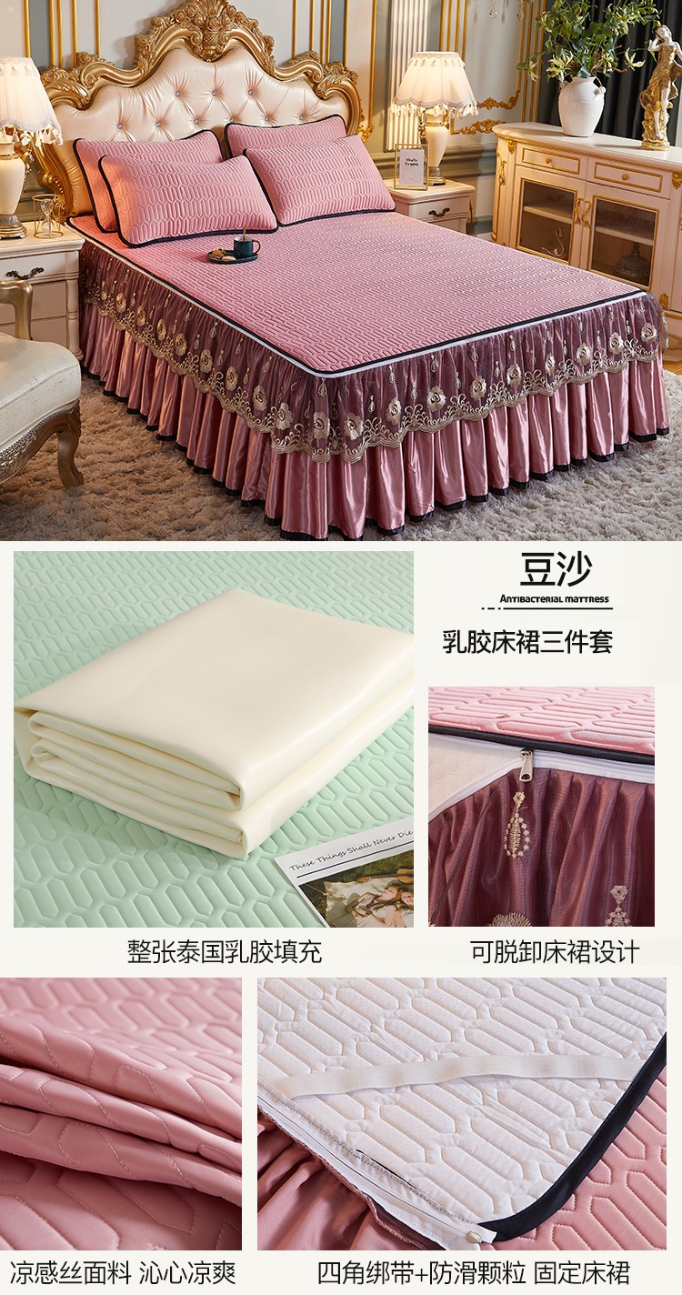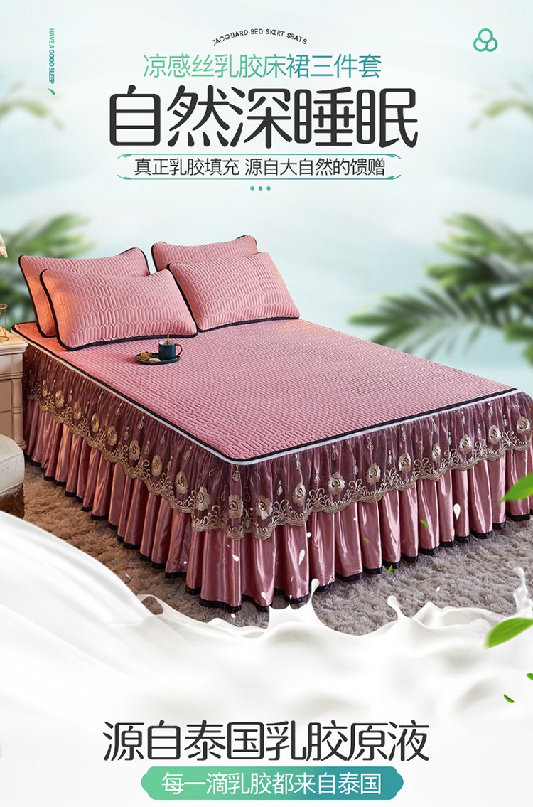 商品名称:网红馆 2025新款凉感丝黑边乳胶床裙三件套 豆沙