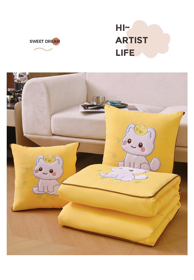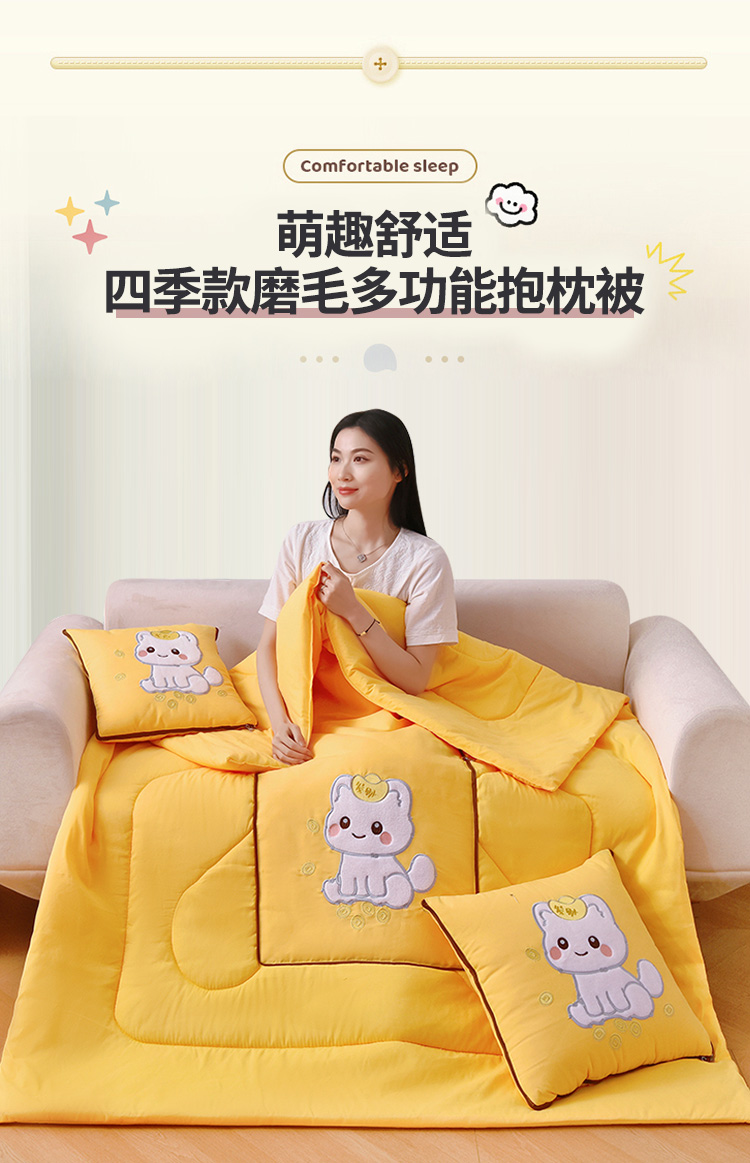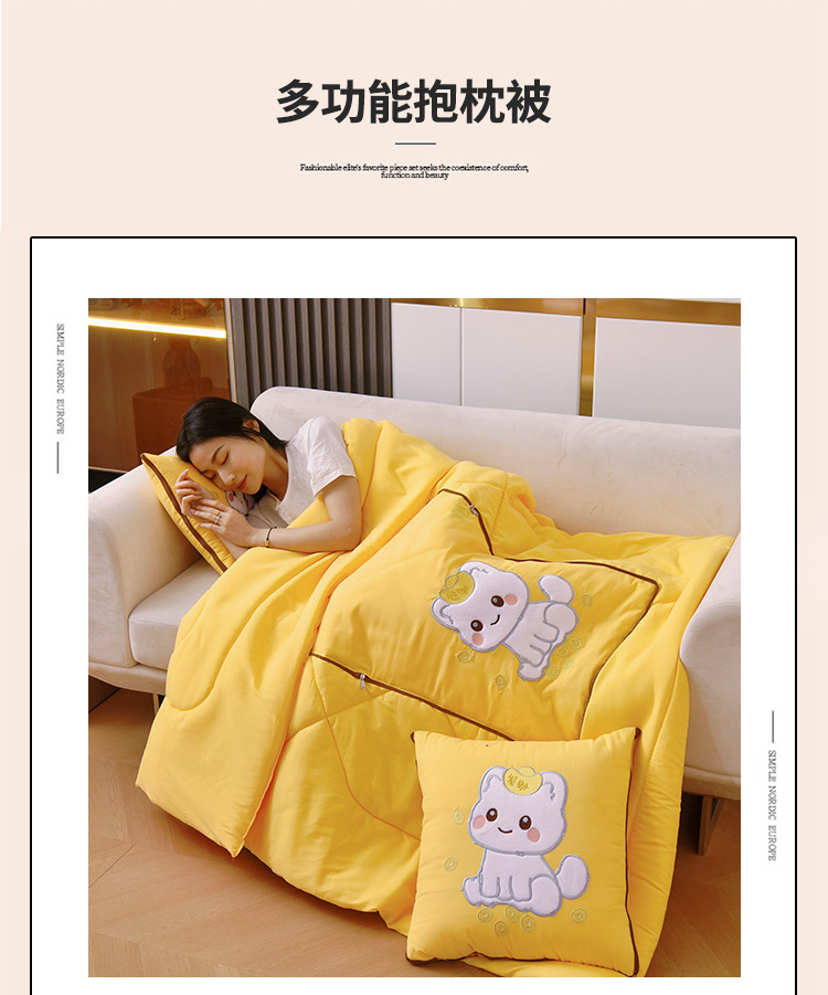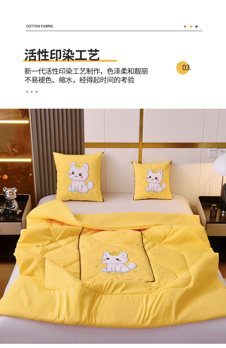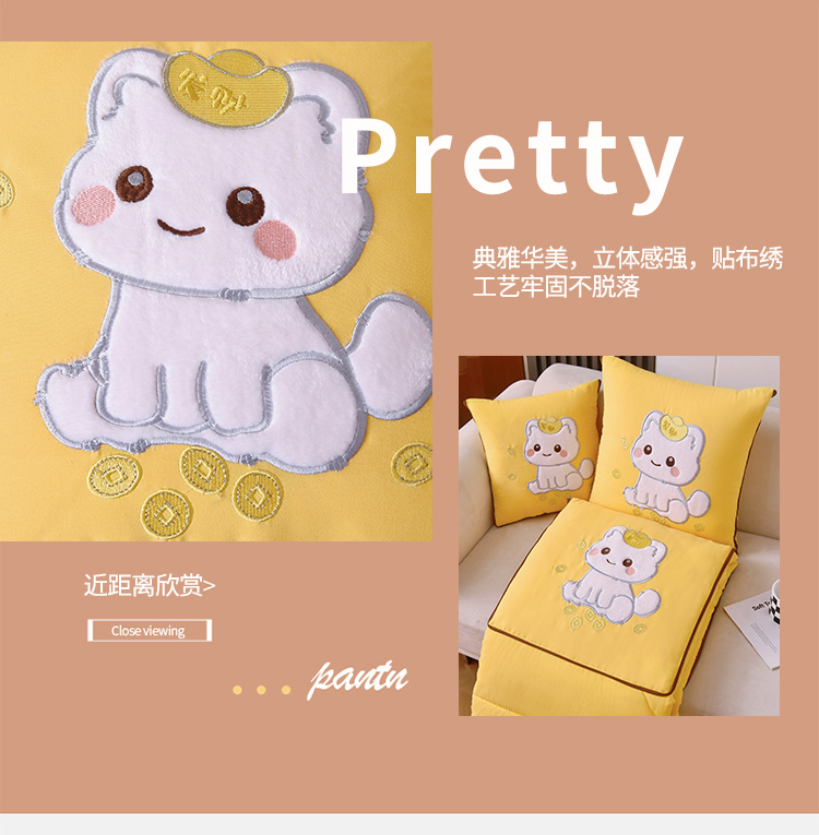 阳光依佰 2023新款磨毛贴布绣四季款抱枕被-发财猫 发财猫-明黄